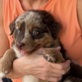 I fell in love with this breed six years ago when I found my oldest Aussie Kaiyden. He is the most loyal companion with the sweetest spirit! I adore the little wiggle butts. Warms my heart! I wanted to be part of raising this wonderful breed and spent time learning about Australian Shepherds from genetics, breeding, the care of, and much more!