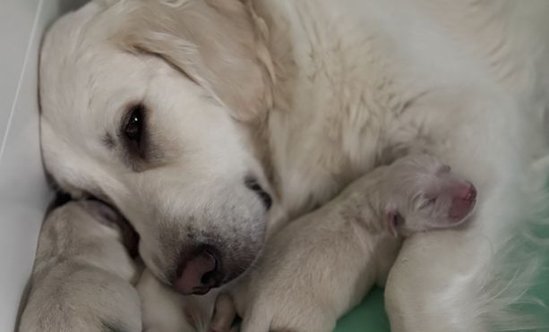 Winnie is a female Golden Retriever. Carefully selected as a great representative of her breed, Jill decided to make her part of their program. Jill has passed Good Dog’s screening process, which involved a review of their breeding practices, environment, and the mental and physical health of their dogs.