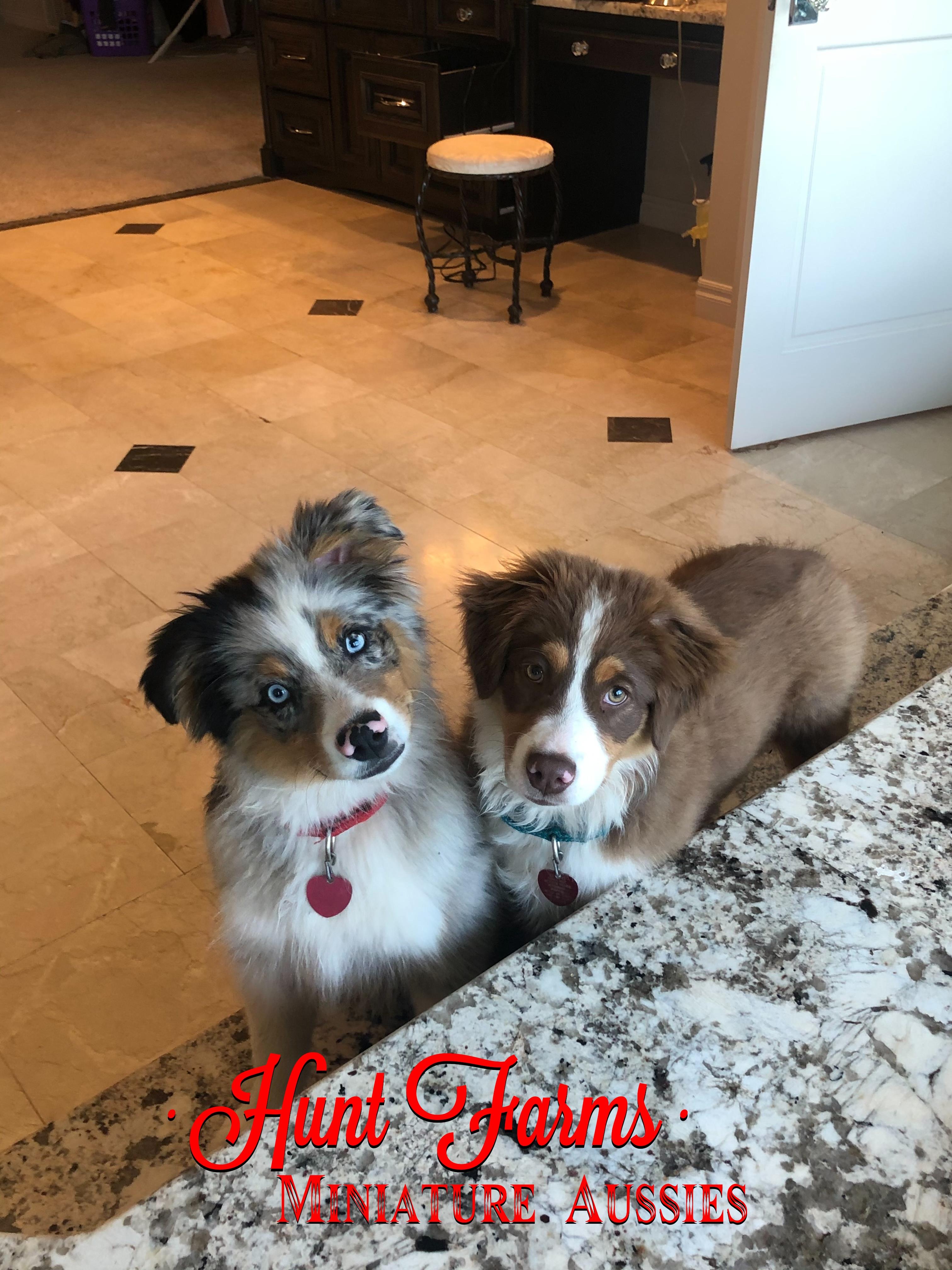 Our Miniature Australian Shepherd puppies include blue merle, red merle, red, and black. Australian Shepherd puppies include black, red merle, blue merle, and red. Colors will vary depending on the parent dogs.
