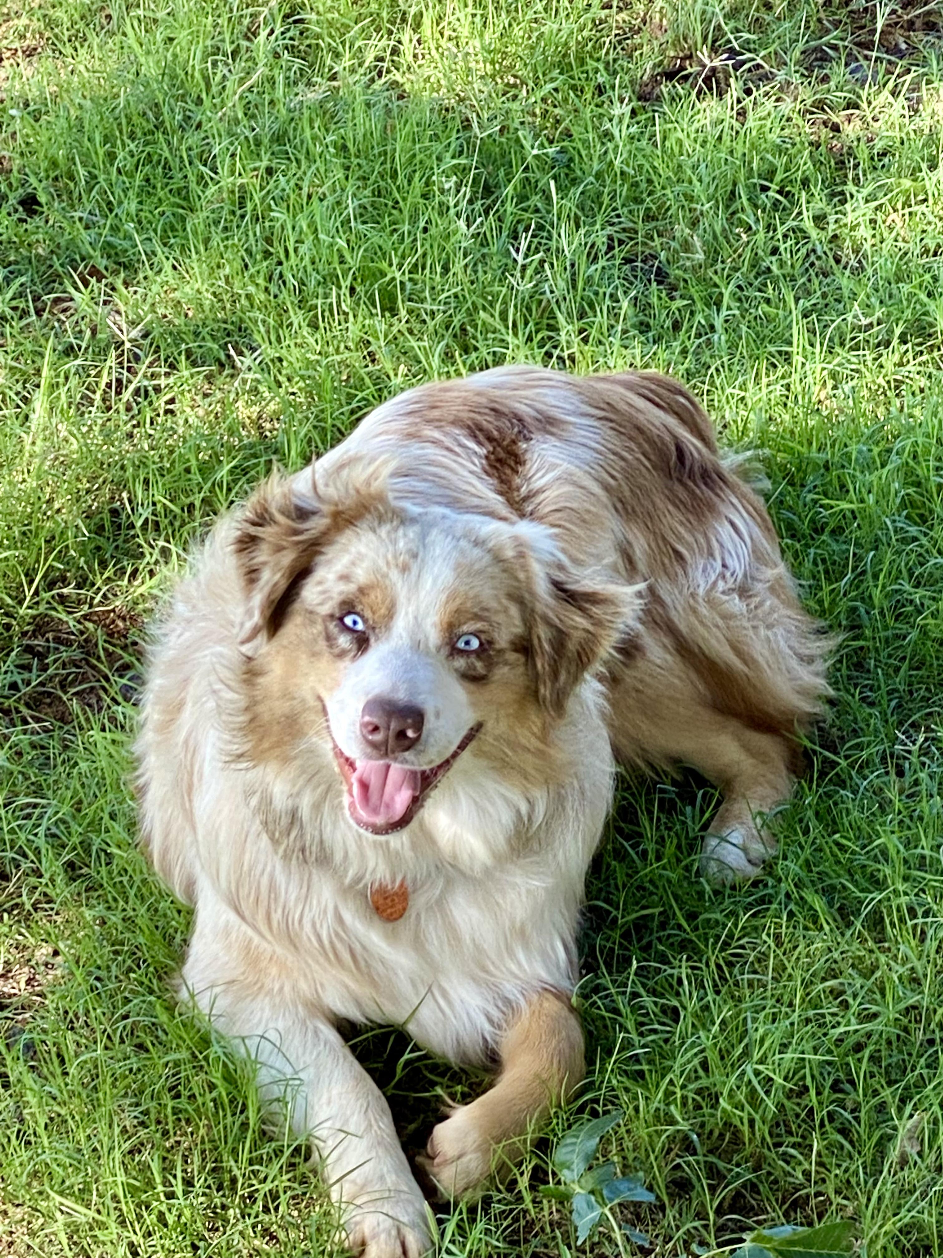 Piper is a female Miniature Australian Shepherd about 9 years old. Carefully selected as a great representative of her breed, Melody decided to make her part of their program. Melody has passed Good Dog’s screening process, which involved a review of their breeding practices, environment, and the mental and physical health of their dogs.