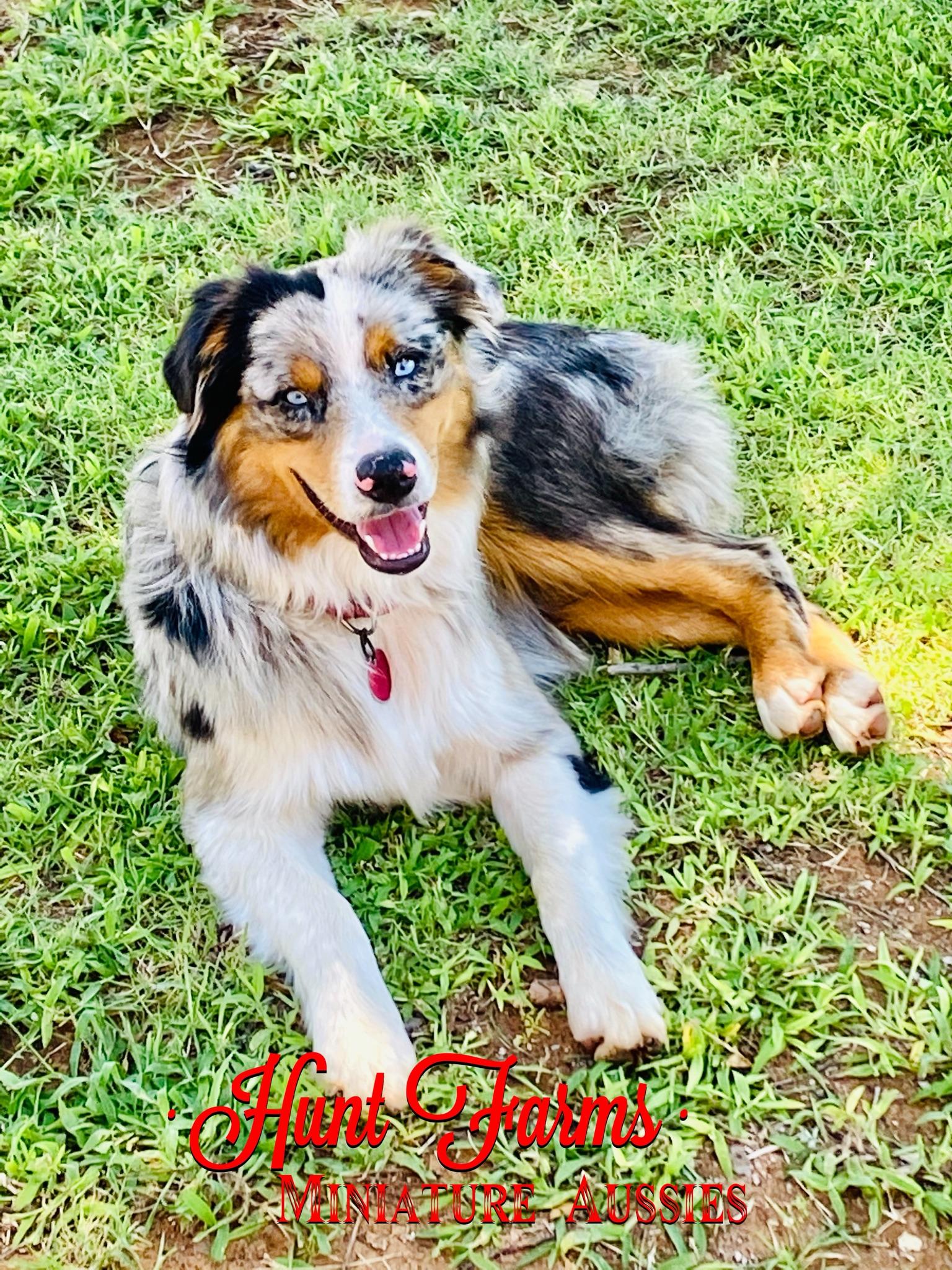 I'm Melody H., the breeder behind Hunt Farms Australian Shepherds located in Grandfield, OK. We care deeply about this breed and are proud to be responsible breeders. We treasure each puppy in our program and give them all the attention and care that we possibly can. We work hard so our puppies can leave our home with confidence, ready to take on the world with their new family!