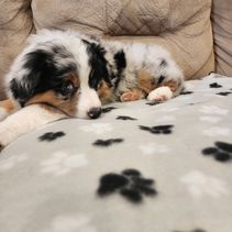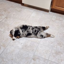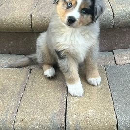 Our puppies include blue merle, black tri, red tri, and red merle. Colors will vary depending on the parent dogs.