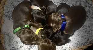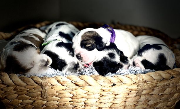 Our puppies include sable and white, sable, red roan, red, blue roan, black and white, and black. Colors will vary depending on the parent dogs.