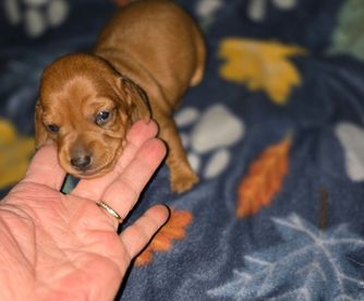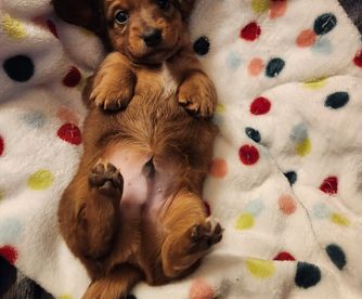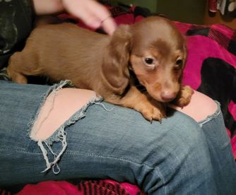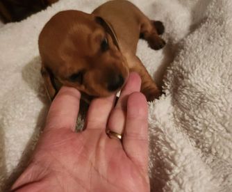 Erica was great to work with and made the process very smooth and easy! She communicated well, and shared pictures/video chatted me so I could see my new baby (Dolly) in the weeks prior to getting her. If I’m ever looking for a dachshund in the future I’ll definitely keep her in mind, and I would definitely recommend her to others!