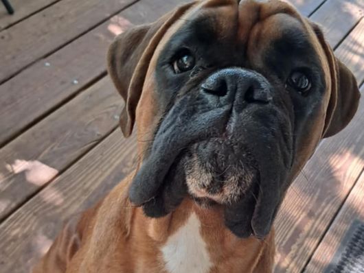 Dudley is a male Boxer. Carefully selected as a great representative of his breed, Danielle decided to make him part of their program. Danielle has passed Good Dog’s screening process, which involved a review of their breeding practices, environment, and the mental and physical health of their dogs.