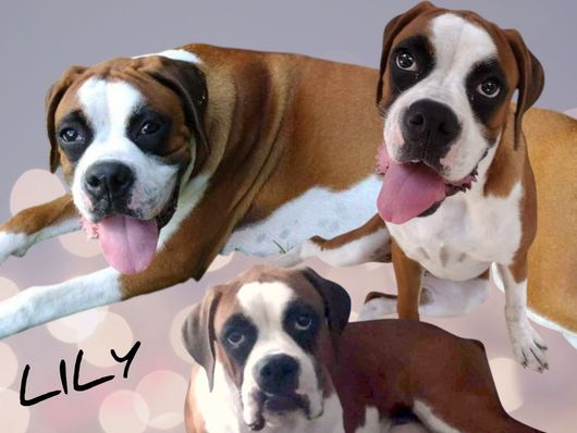 LINDEE is a female Boxer. Carefully selected as a great representative of her breed, Danielle decided to make her part of their program. Danielle has passed Good Dog’s screening process, which involved a review of their breeding practices, environment, and the mental and physical health of their dogs.