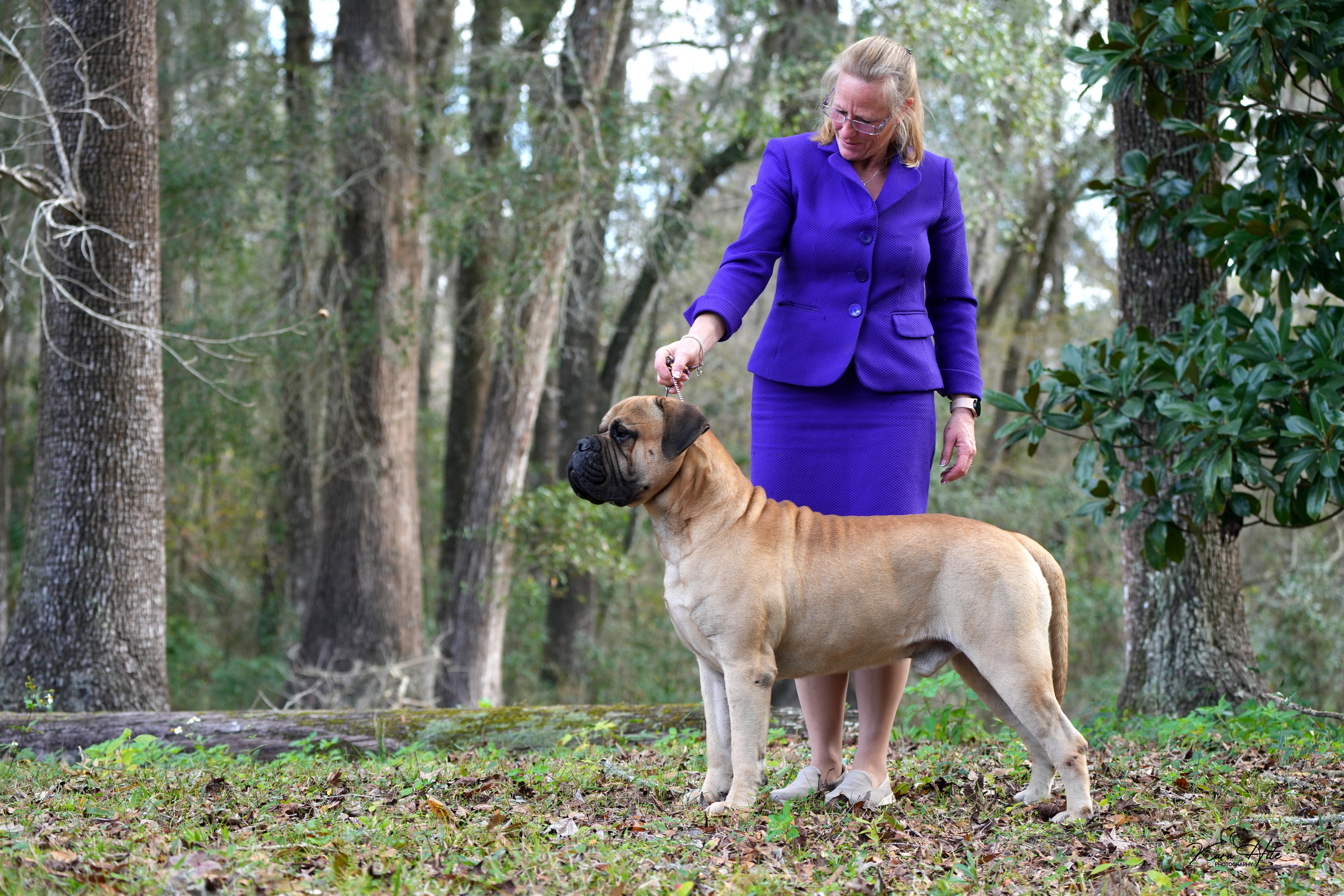 I'm Lisa T., the breeder behind Hurricane Bullmastiffs located in Brooksville, FL. It is our goal to help ensure the future of the Bullmastiff through responsibly breeding our exceptional dogs. We are responsible breeders who are passionate about Bullmastiffs. Our dogs are central to our lives, and we are proud of their accomplishments. We enjoy participating in conformation events and staying involved in the breed.
