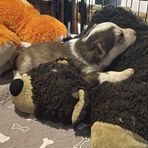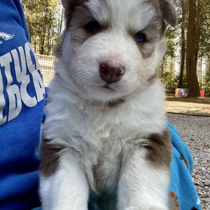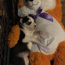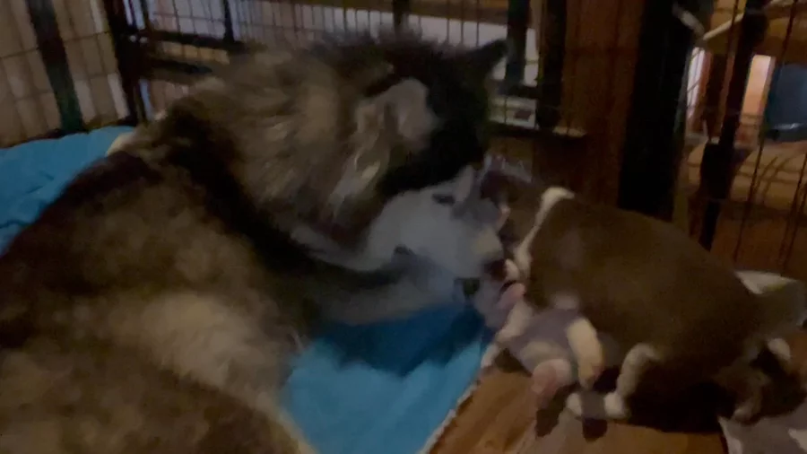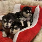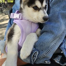 Darcy is a smaller Husky around 35 pounds and very sweet and loving. She loves to snuggle and is an amazing first time mom.