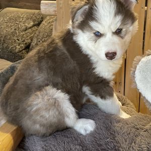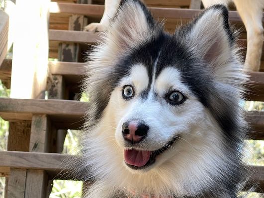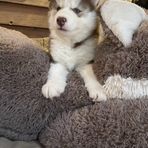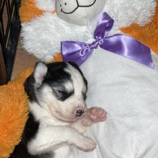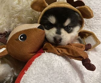 Jewels is a beautiful Pomsky with and amazing loving temperament. She was from our first Pomsky litter with Willowmina and Kaspien. Her Pups are so gentle and sweet just like her!