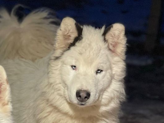 Frosty is a gentle giant!🐾❤️ He has the most loving personality ever. He is solid white except for one red dot on his ear.