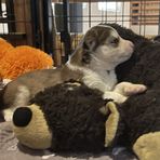 The girls are starting to walk, talk and play now!! They are sooooo cute!! Eyes are opened and I believe that Roxy and Ruby both are going to have brilliant blue eyes like Mama and Papa💙🐾