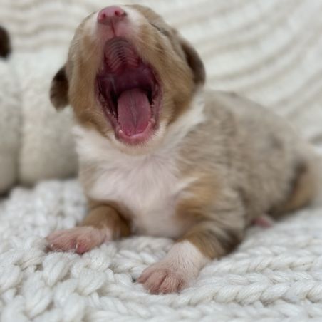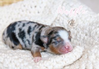 My program strives to keep the breed standard. We like to focus on unique coat colors and minimal white, stocky Toy Australian Shepherds.