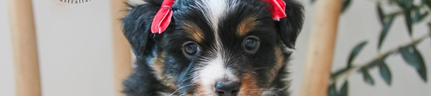 Our Miniature American Shepherd puppies include red & white, red tri-color, black & white, black tri, black, red merle, blue merle, and red. Miniature Australian Shepherd puppies include red & white, black & white, blue merle, black tri, red tri, red merle, red, and black. Toy Australian Shepherd puppies include red & white, black & white, red, black, black tri, blue merle, red merle, red tri, and blue tri. Colors will vary depending on the parent dogs.