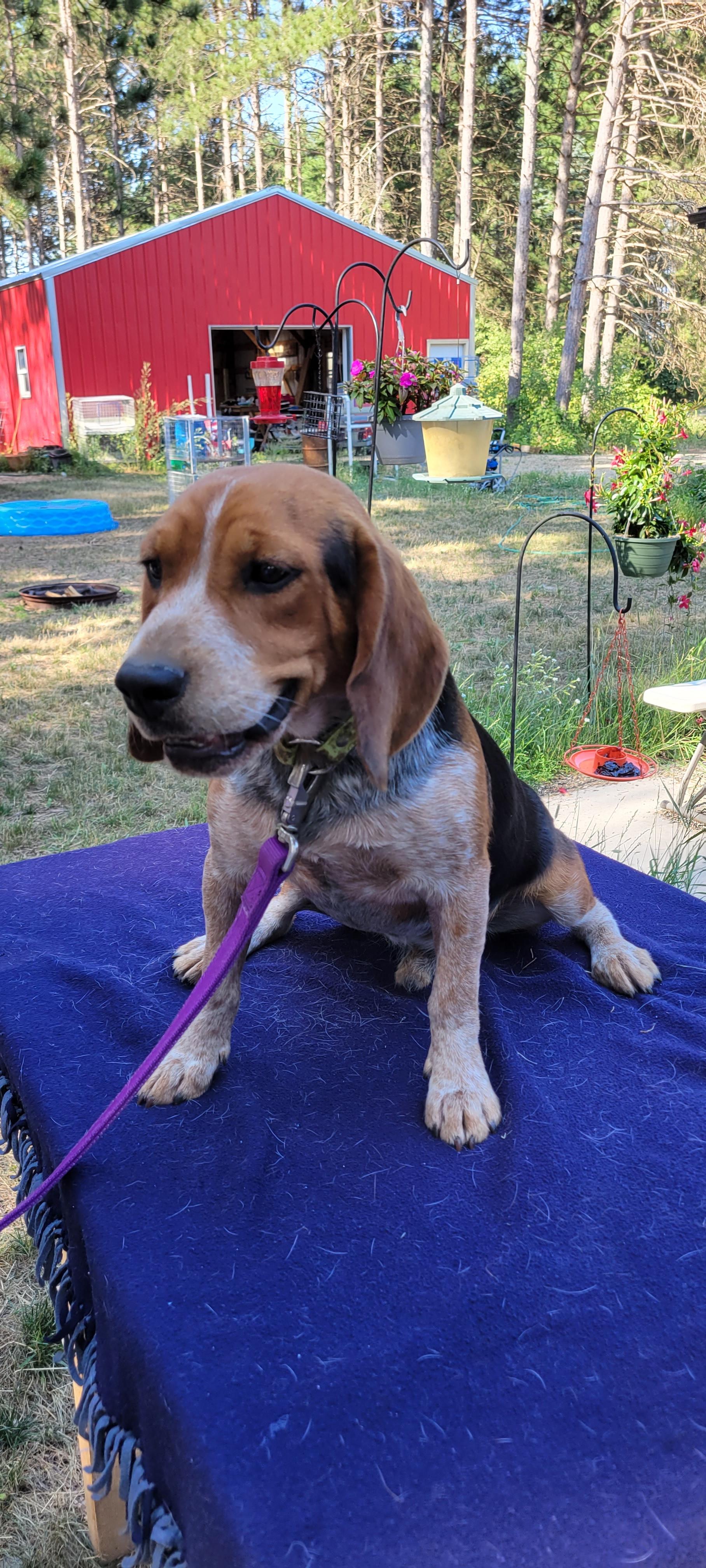 I googled Beagles near me and “I wanna hunt too” was the first to show, I was visiting my daughter in Kalamazoo MI, driving home to the Upper Peninsula of Michigan so I went the Wisconsin way home ti met and pick up Nelly! The process was easy and safe and I felt it was right! It amazed me there was so many beagles and not one bark….Nelly is such a sweet loving pup learning quick. Sleeps well in her crate. Rides in the car like a champ! I’m very lucky I found her. Kevin and his family where very easy to work with! Thanks