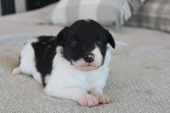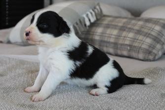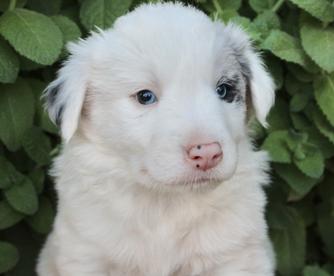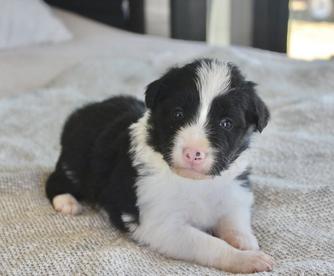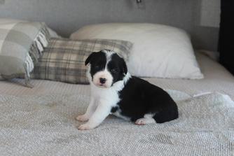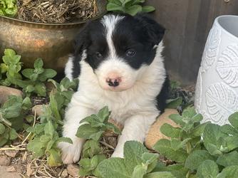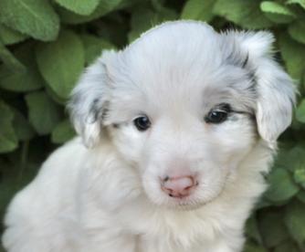 Our puppies include black and white and blue merle. Colors will vary depending on the parent dogs.