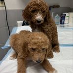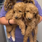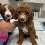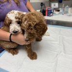 Our sweet poodles went to the vet and had heathy checkups!! Adoption week starts Friday!! 🐶😊