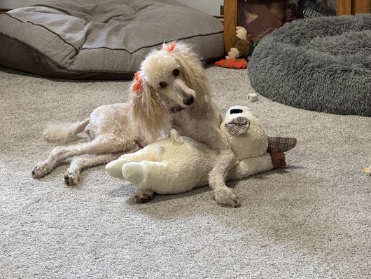 Minnie is a female Poodle. Carefully selected as a great representative of her breed, Shawnda decided to make her part of their program. Shawnda has passed Good Dog’s screening process, which involved a review of their breeding practices, environment, and the mental and physical health of their dogs.