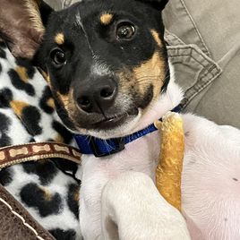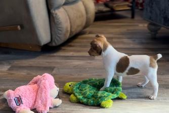 Toto is a female Rat Terrier. Carefully selected as a great representative of her breed, Renee decided to make her part of their program. Renee has passed Good Dog’s screening process, which involved a review of their breeding practices, environment, and the mental and physical health of their dogs.