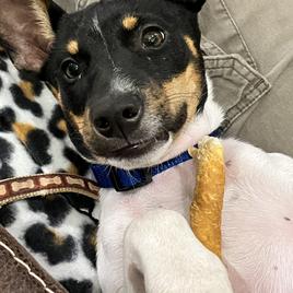 Valentine is a female Rat Terrier. Carefully selected as a great representative of her breed, Renee decided to make her part of their program. Renee has passed Good Dog’s screening process, which involved a review of their breeding practices, environment, and the mental and physical health of their dogs.