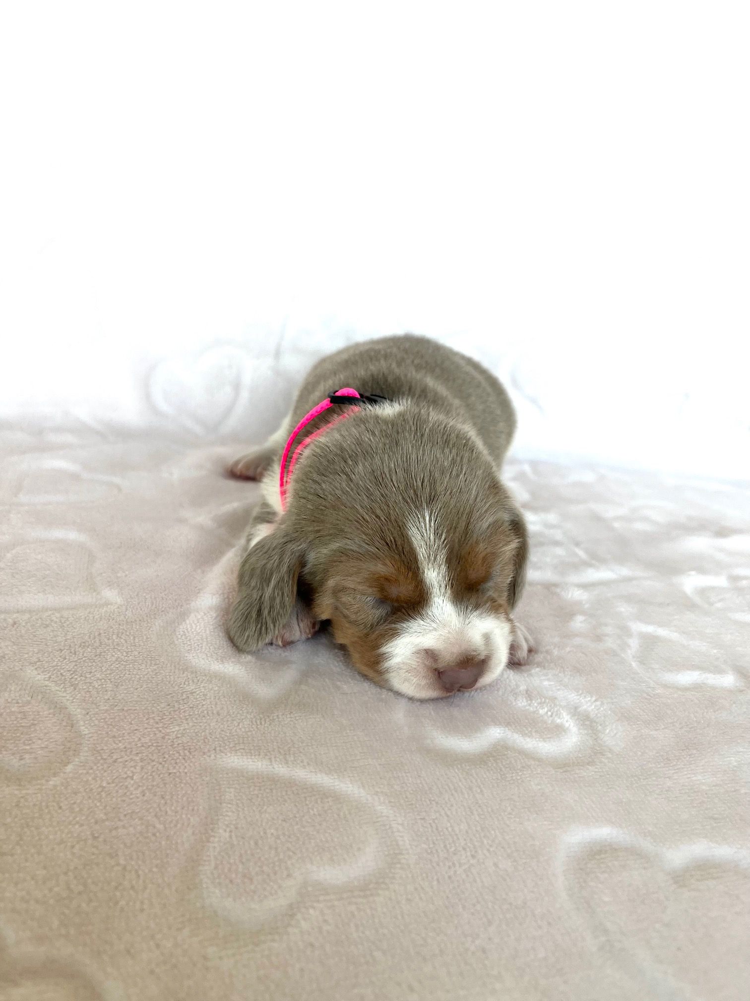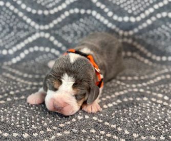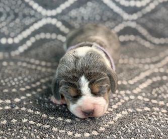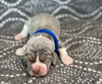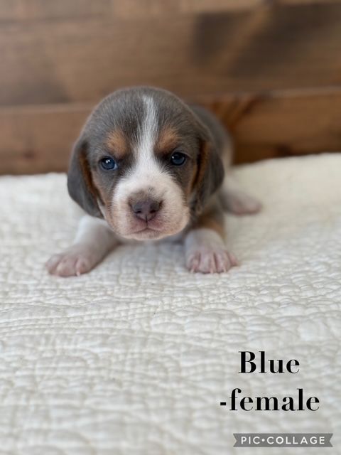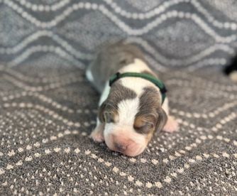 Our puppies include tan and white, brown white and tan, blue tan and white, and black tan and white. Colors will vary depending on the parent dogs.