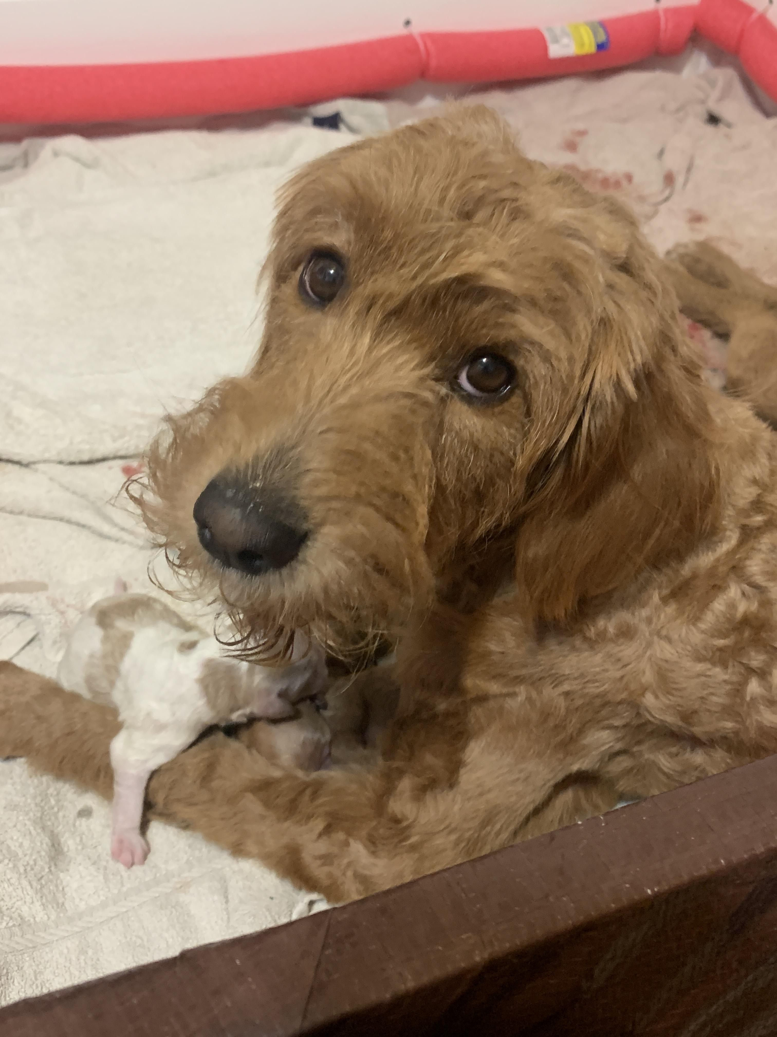 Lady is a female Goldendoodle. Carefully selected as a great representative of her breed, Jessica decided to make her part of their program. Jessica has passed Good Dog’s screening process, which involved a review of their breeding practices, environment, and the mental and physical health of their dogs.