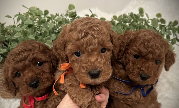 Our puppies are red. Colors will vary depending on the parent dogs.