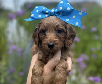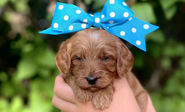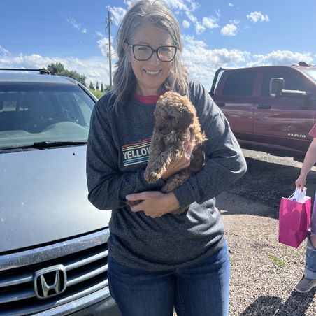 I'm Jamie F., the breeder behind Idaho Sugar Doodle Pups located in Sugar City, ID. Our family F1 Goldendoodle is bred one litter at a time. We focus on her litter only and raise these puppies in our home amongst family love and family activities. We gently handle them multiple times each day and safely expose them to new situations. These are the sweetest family dogs!
