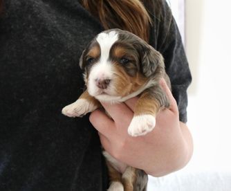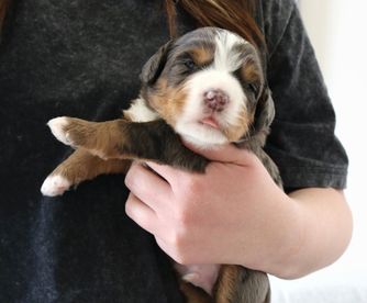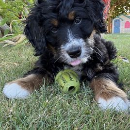 When we decided to step our toes into the waters of puppy-life, we came knowing nothing and with SO MANY questions. Jenna was immediately and consistently responsive, and so generous and gracious with her replies. She really helped us feel confident every step of the way and ultimately passed off the sweetest pup. Yankee (now Rumble) was dispositionally just as she described him: gentle, affectionate, and fun. He clearly grew up around kids because he adores not only ours but any he comes across. He's playful but incredibly responsive to training and is just a fluffy ball of love and joy. We cannot imagine our family without this guy and are so grateful for the nurturing early life he had with Jenna and her family. We highly recommend her pups if you're looking for a beautifully coated, mild-mannered mini-Bernedoodle!