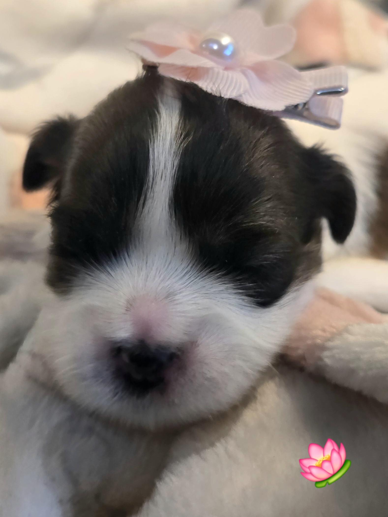 I found Laura after joining a Shichon Facebook Group. Looking at the pictures of the available puppies and the way she dressed them showed me enough to contact her! I had tons of questions and Laura responded to them all quickly with patience and genuine care. Once I selected the puppy I wanted she kept me up to date on her vet visits, her growth, her eating habits and her t temperament. By the time she, now known as Callie, was ready to leave her care, she was already a part of our family! Laura had potty trained Callie to go on a pad and outdoors. Callie was full trained to poop outside. This made puppy life sooo much easier! When I picked Callie up, she was clean, docs were ready, care package of treats, toys and her history folder was ready to go. I was thoroughly impressed! The entire experience was professional and seamless. I have since referred Laura and if I were to get another puppy she would definitely be my choice! Thank you Laura! You gave us the perfect addition to our family.