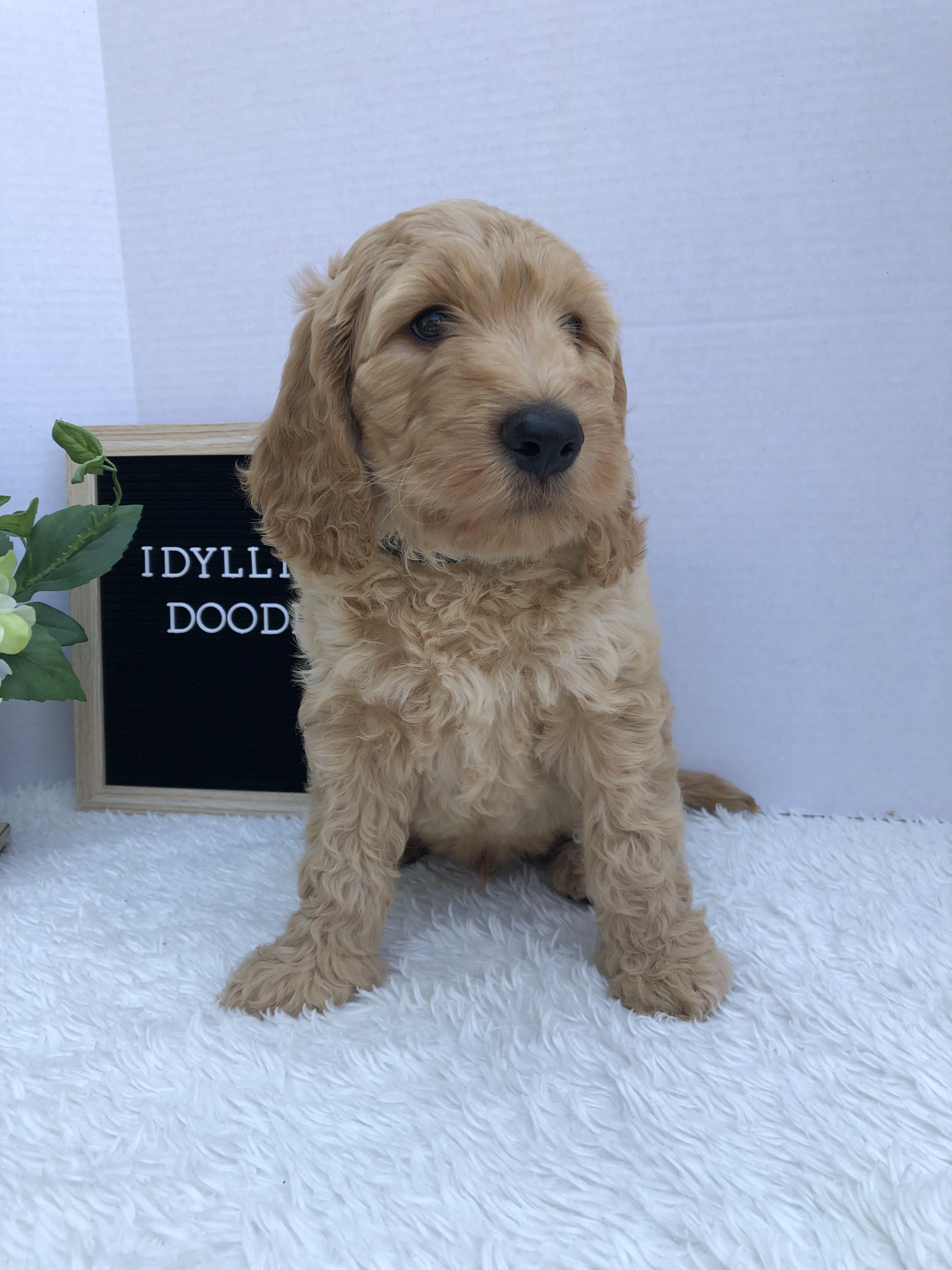 Milo is a male Goldendoodle. Carefully selected as a great representative of his breed, Landon decided to make him part of their program. Landon has passed Good Dog’s screening process, which involved a review of their breeding practices, environment, and the mental and physical health of their dogs.