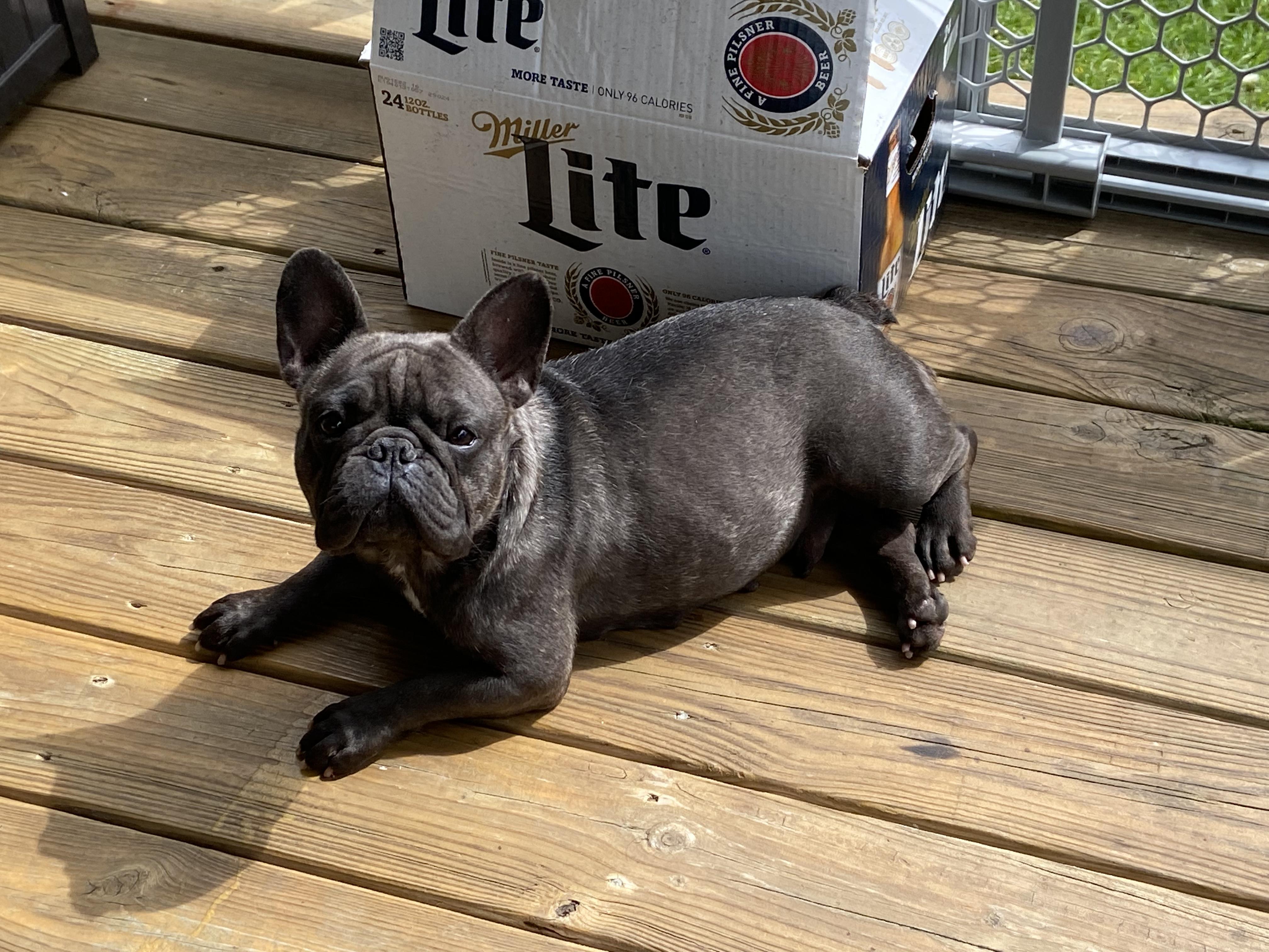 Stitch is a standard color brindle female. She’s the best little potato calm and loving personality which she passes to her kids! She has a beautiful pedigree and she has great health! Come meet her ! She will not disappoint.