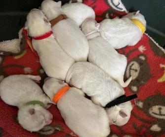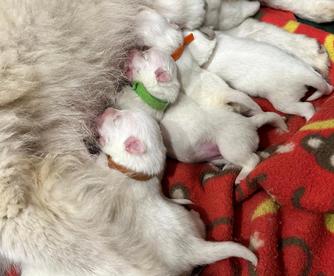 Our puppies are white. Colors will vary depending on the parent dogs.