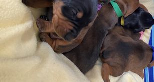 Our puppies include red and black. Colors will vary depending on the parent dogs.
