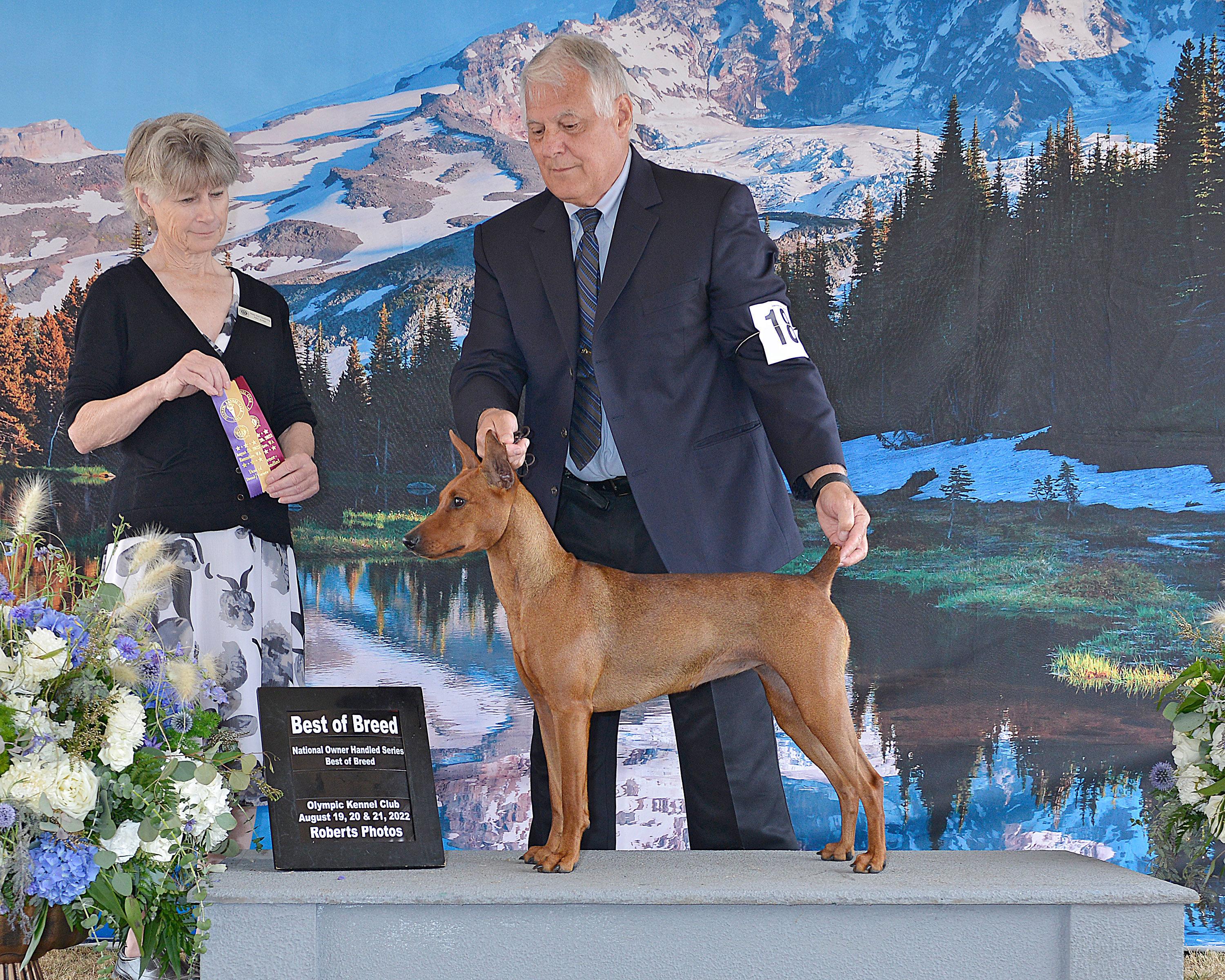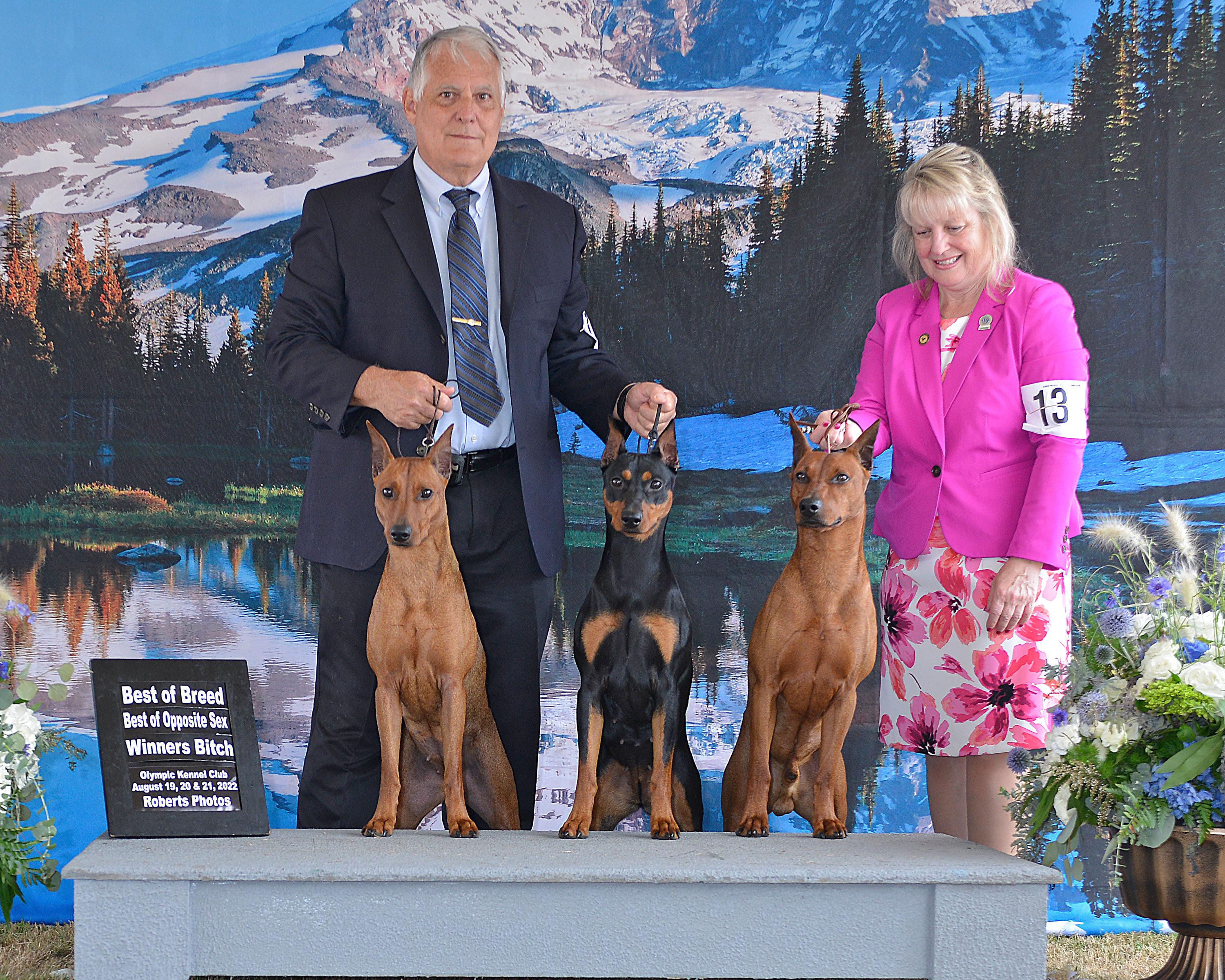 Lorraine is a member of German Pinscher Club of the Southwest, Hurricane Ridge Kennel Club, Mt. Rainier Working Dog Club, and German Pinscher Club of America.