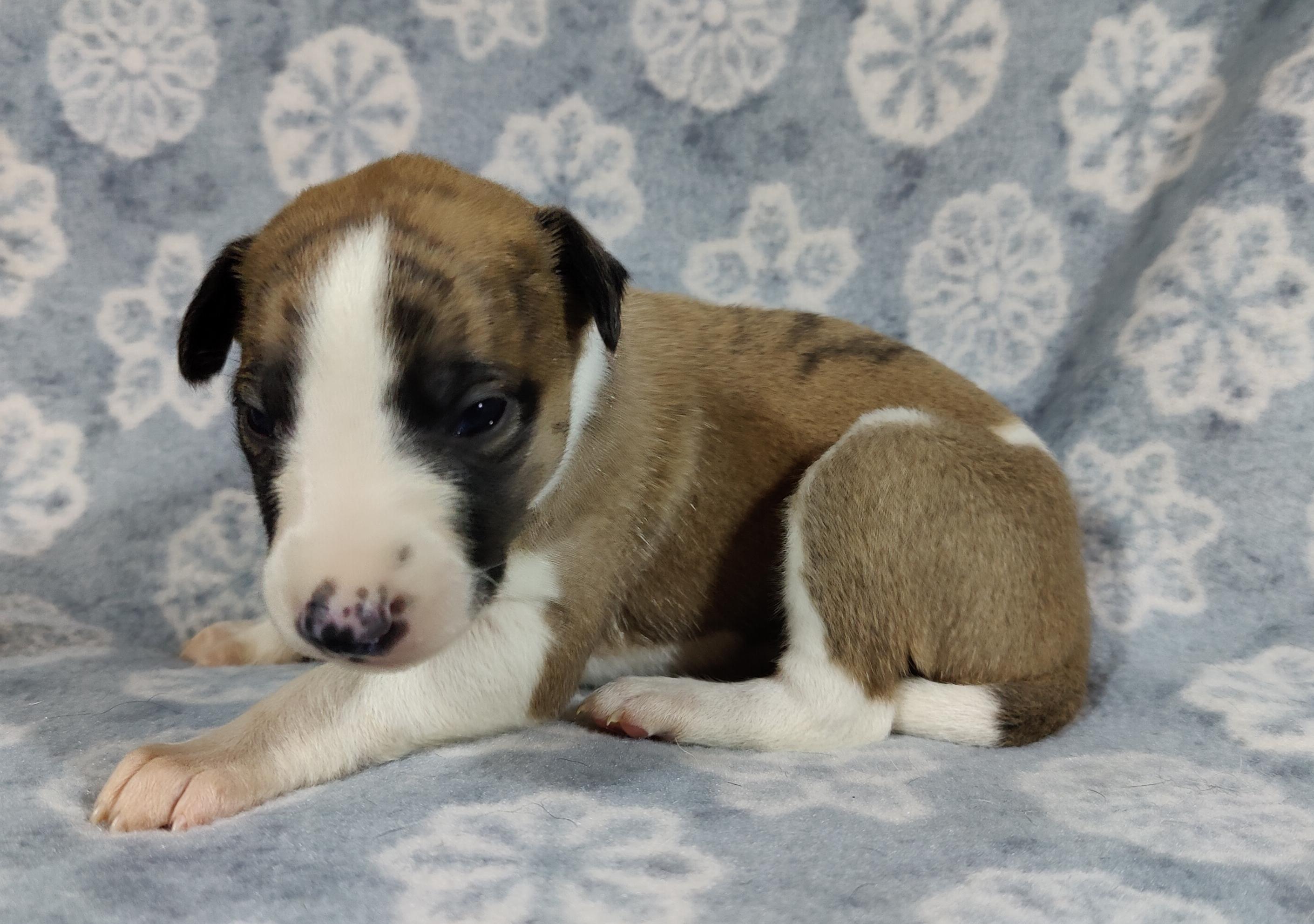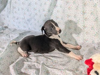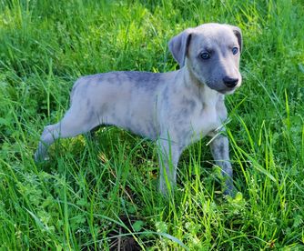Rocket was 4 months old when I took him home, and he is a wonderful little whippet puppy. He sleeps in his crate all night without as much as a whimper and basically potty trained himself. He's as smart as a whippet! I couldn't have made a better decision and am truly grateful for Kyle's experience in breeding these wonderful companions. I wouldn't hesitate to purchase another pup from him in the future.