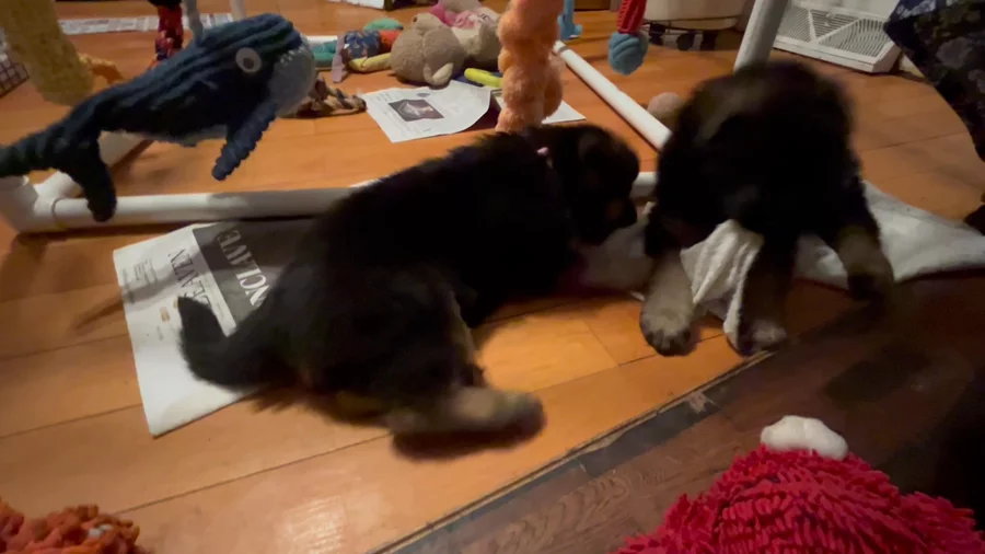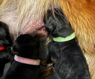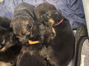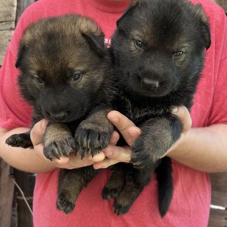 Our puppies include black and tan and black and red. Colors will vary depending on the parent dogs.