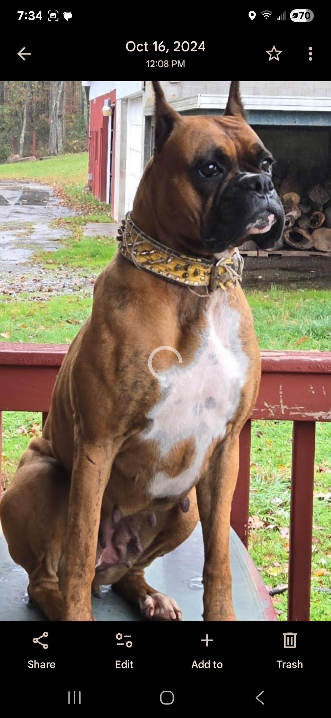 Catalina is a female Boxer. Carefully selected as a great representative of her breed, Tamara decided to make her part of their program. Tamara has passed Good Dog’s screening process, which involved a review of their breeding practices, environment, and the mental and physical health of their dogs.
