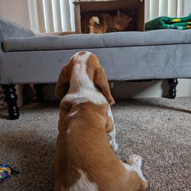 Things went very smoothly and we brought home a healthy happy energetic puppy! Riggsby is doing great and working on potty training and not chasing his cat siblings.