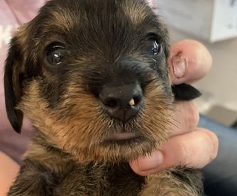Our puppies have wirehaired coats. Coat types may vary depending on the parent dogs.