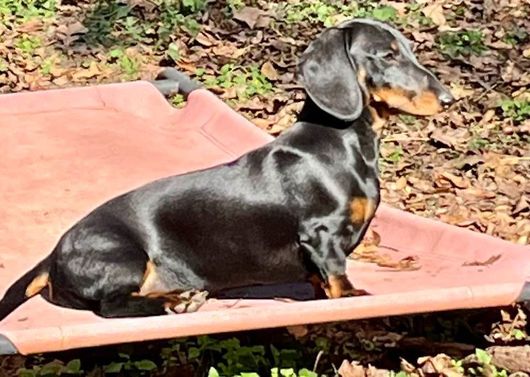 Hailey is a female Dachshund. Carefully selected as a great representative of her breed, Christine decided to make her part of their program. Christine has passed Good Dog’s screening process, which involved a review of their breeding practices, environment, and the mental and physical health of their dogs.