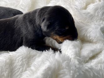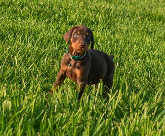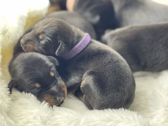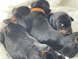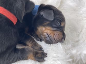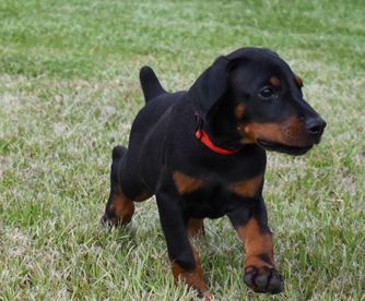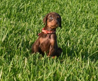 Our puppies include black and rust and red and rust. Colors will vary depending on the parent dogs.