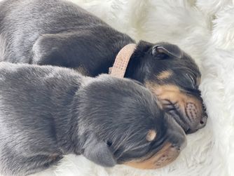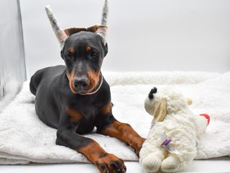 I grew up in a family that raised Weimaraners. Some of my earliest memories are playing with the Weim puppies and sharing our home with our beloved Gray Ghosts. When I met my first Doberman, I immediately fell in love with the breed and dedicated all my extra time to learning more about the breed.