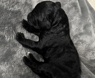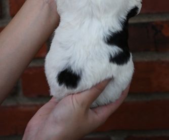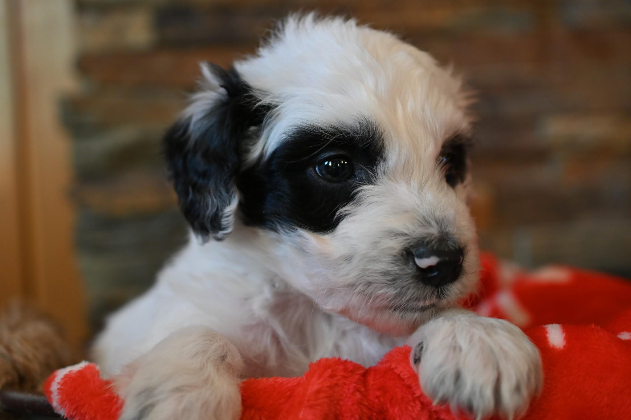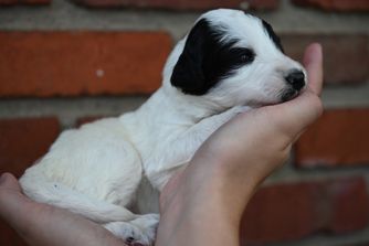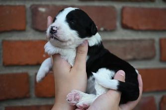 Our puppies include white and black and black. Colors will vary depending on the parent dogs.