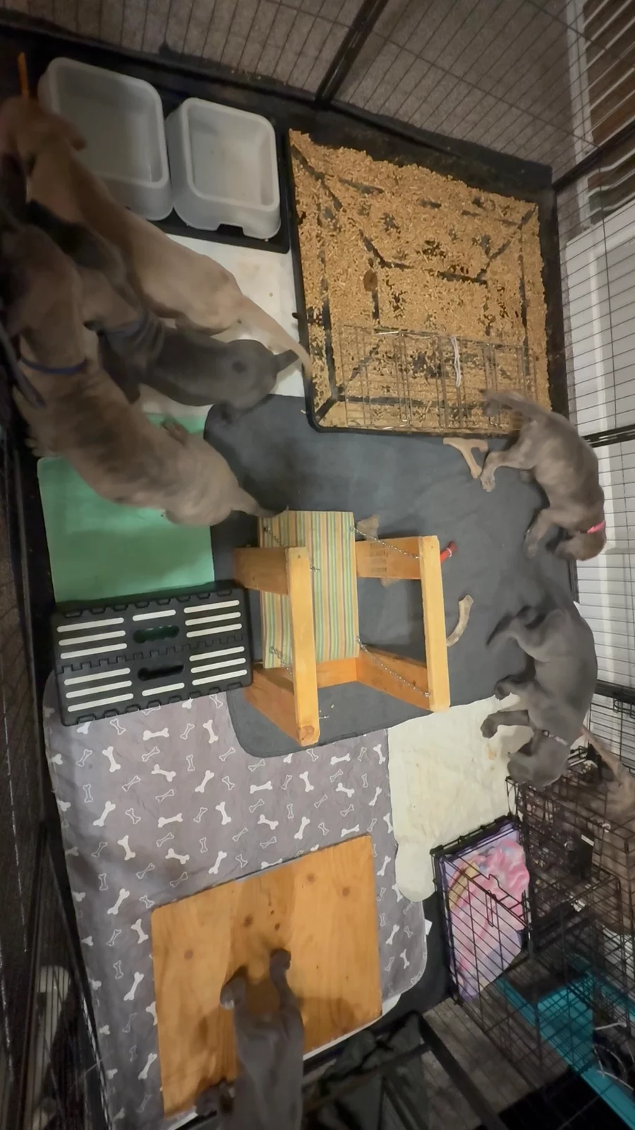 Our puppies include blue brindle and blue. Colors will vary depending on the parent dogs.
