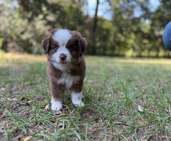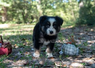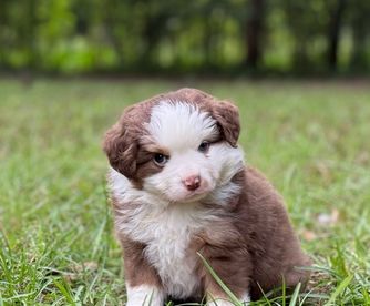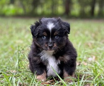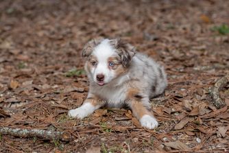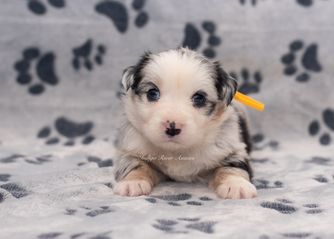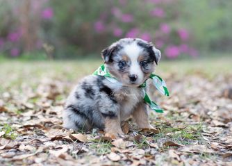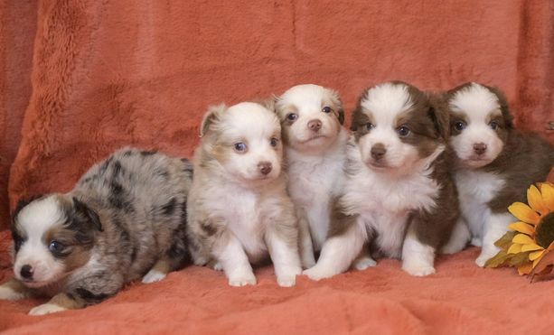 Our Australian Shepherd puppies include red merle, blue merle, black tri-color, and red tri-color. Miniature Australian Shepherd puppies include blue merle, red merle, red, and black. Toy Australian Shepherd puppies include black, red, blue merle, and red merle. Colors will vary depending on the parent dogs.