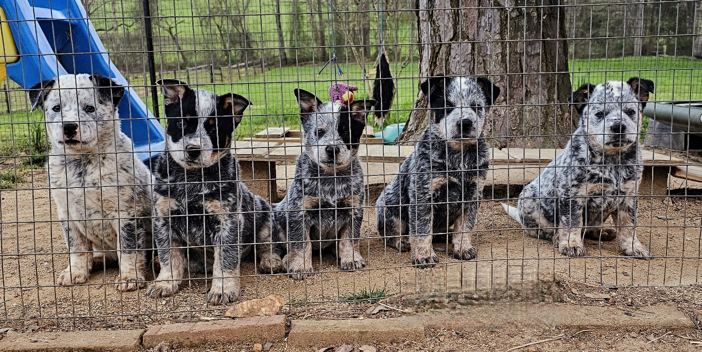 Our puppies include red speckled, blue mottled, and blue. Colors will vary depending on the parent dogs.