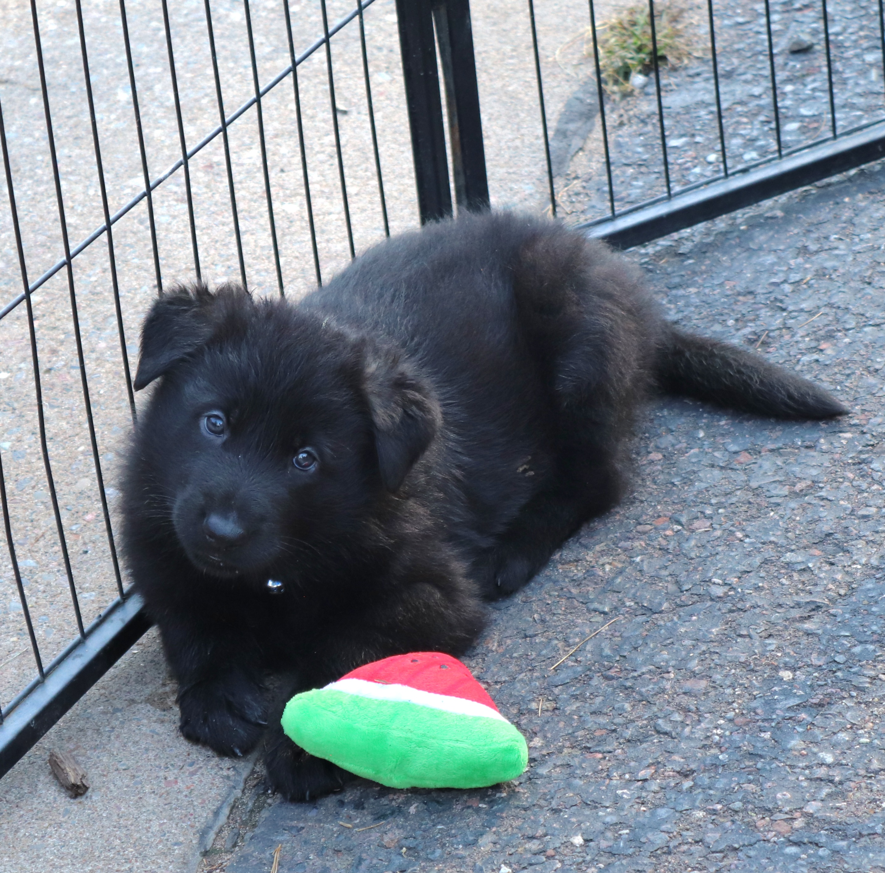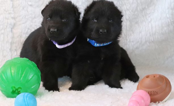 Our puppies include sable and black. Colors will vary depending on the parent dogs.