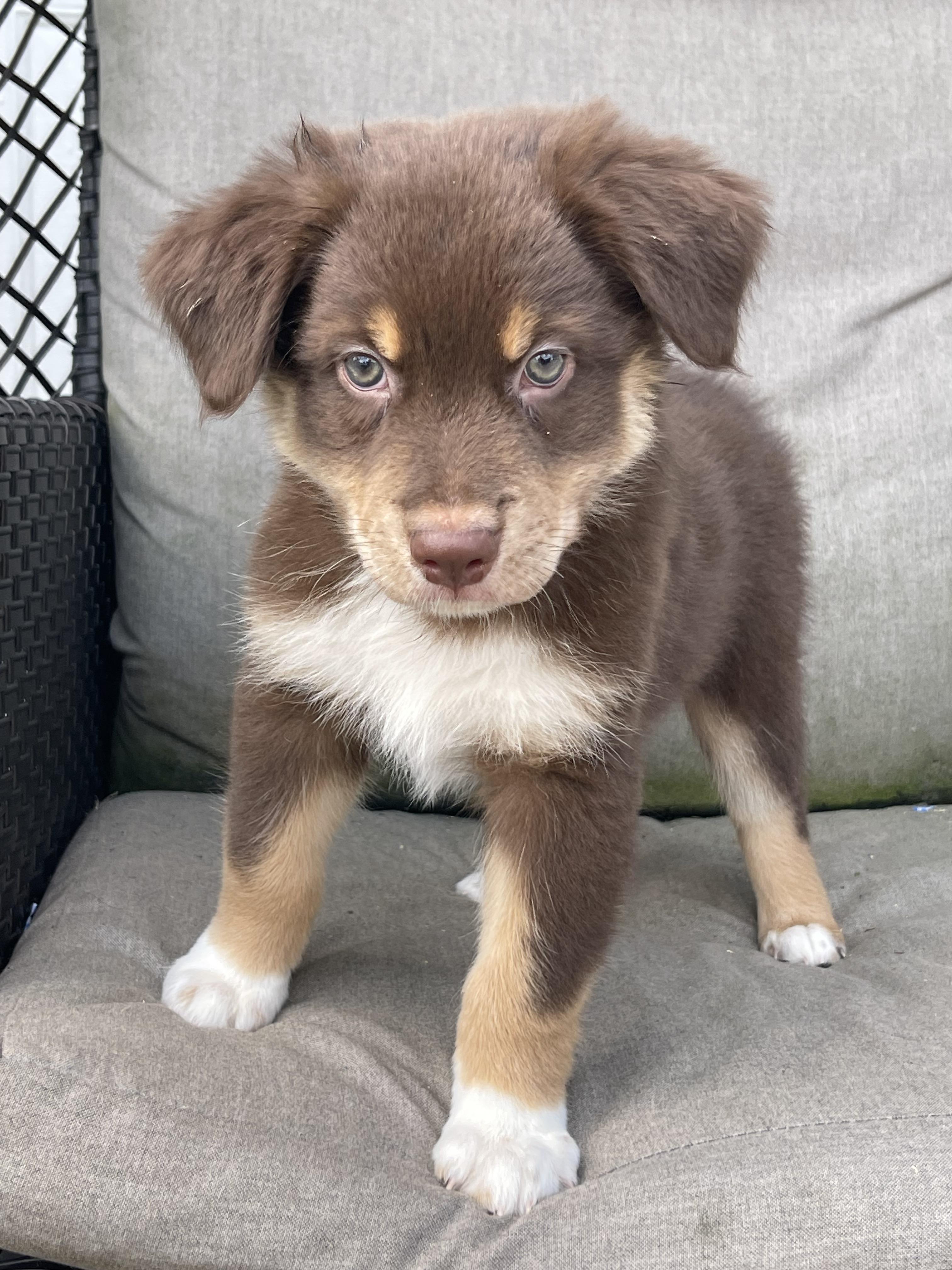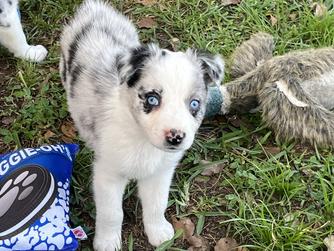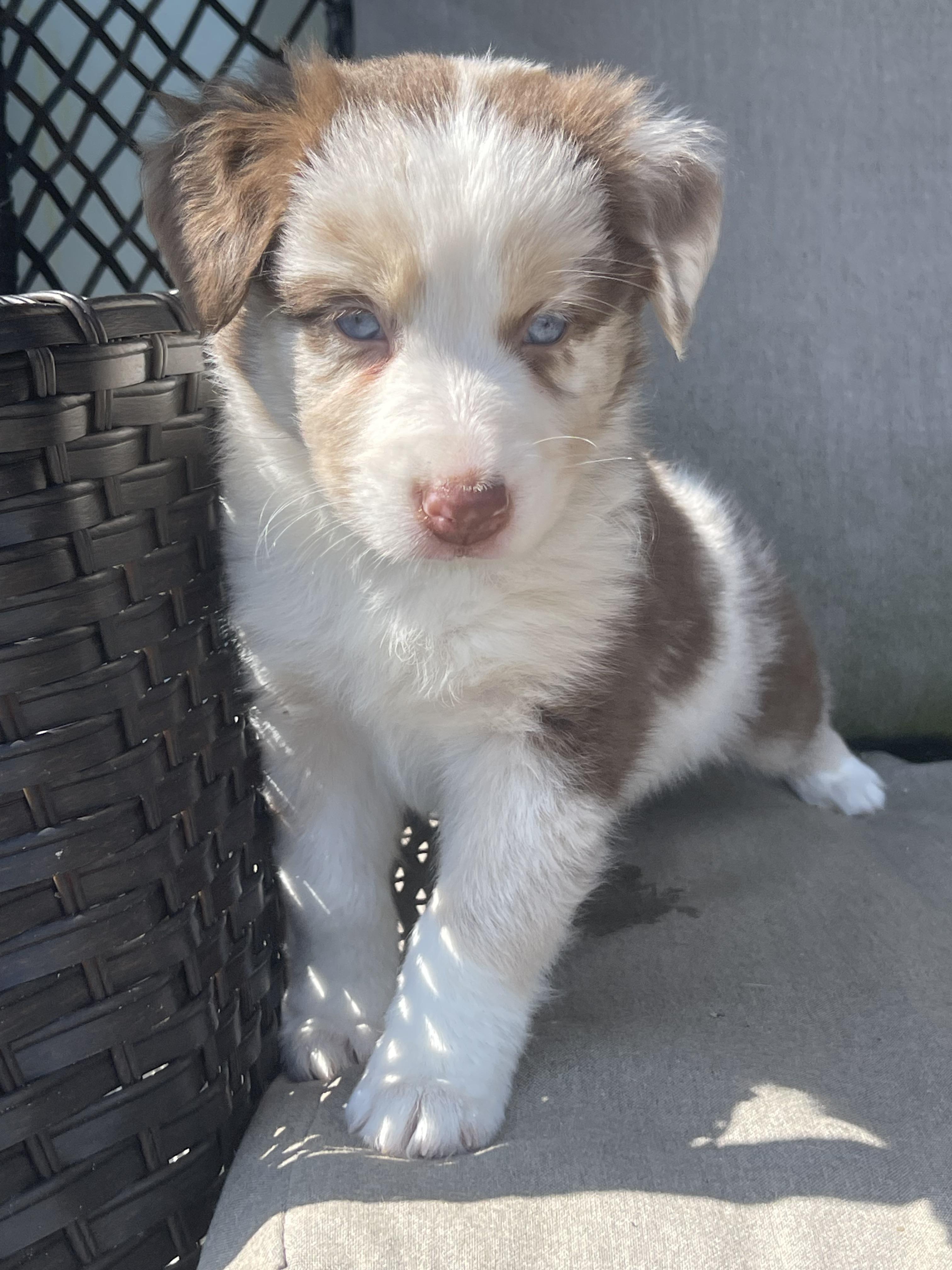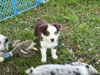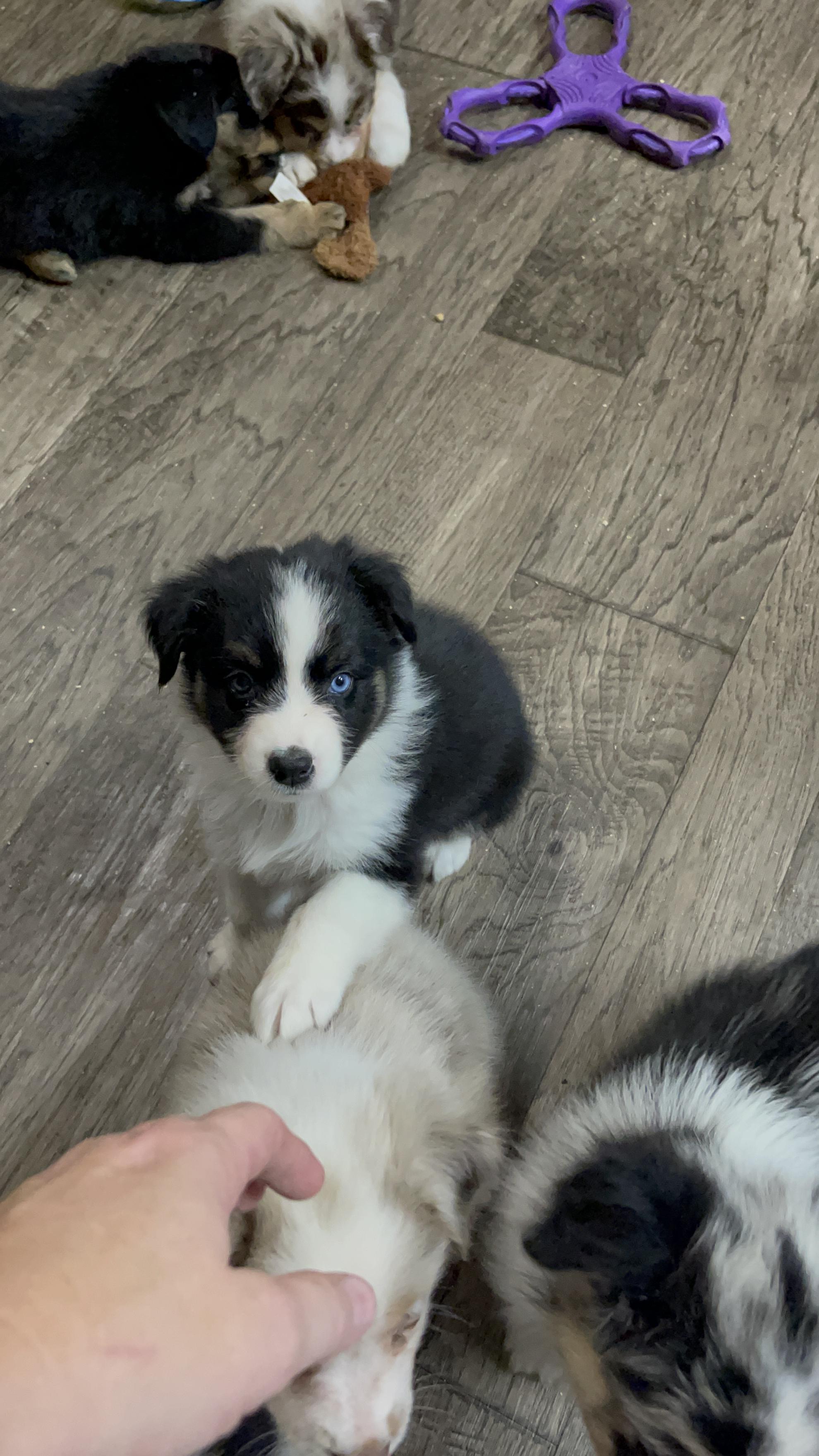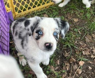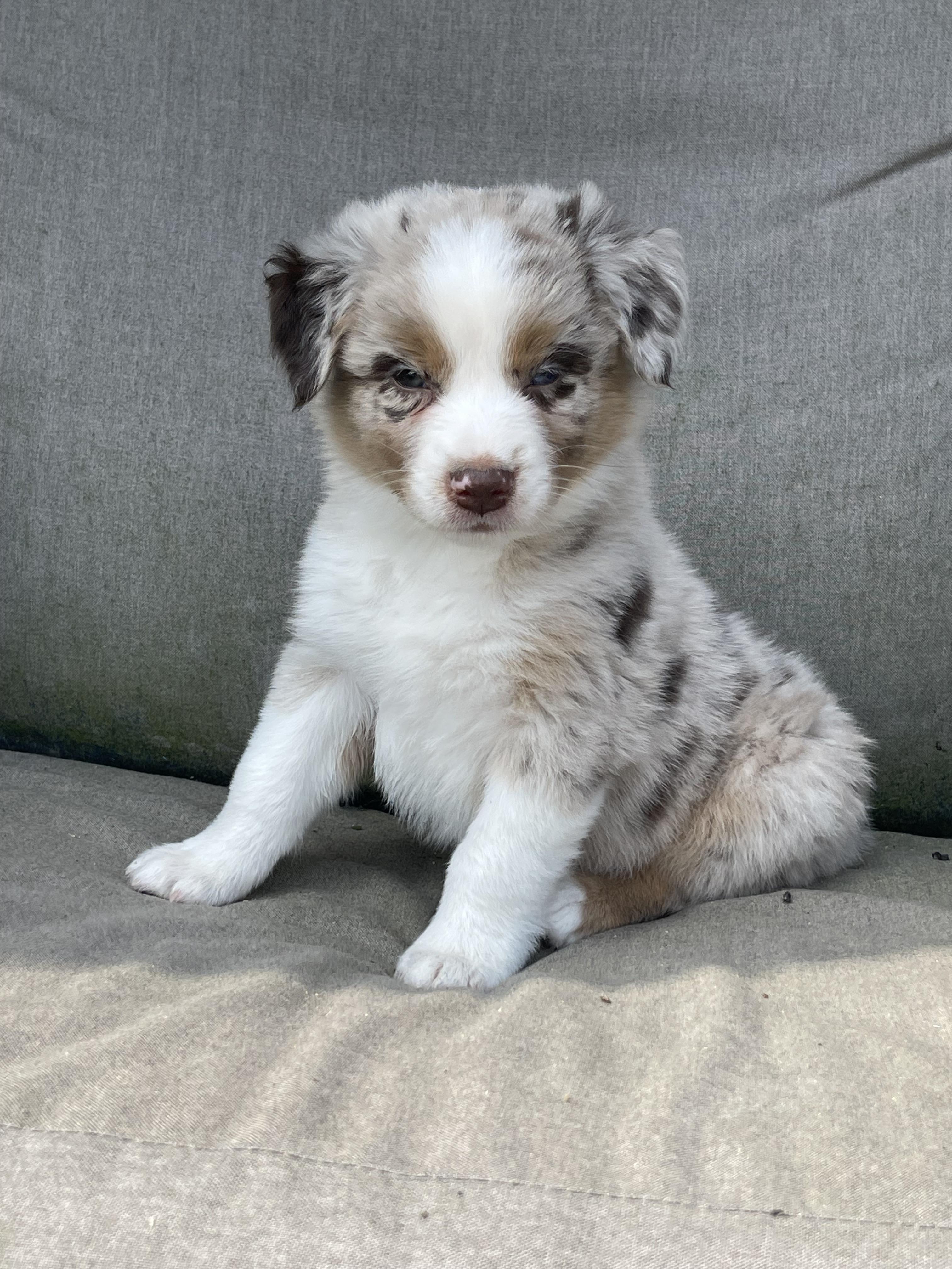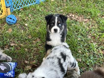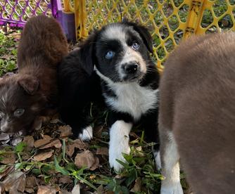 Our puppies include red merle, blue merle, black tri-color, and red tri-color. Colors will vary depending on the parent dogs.
