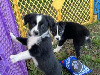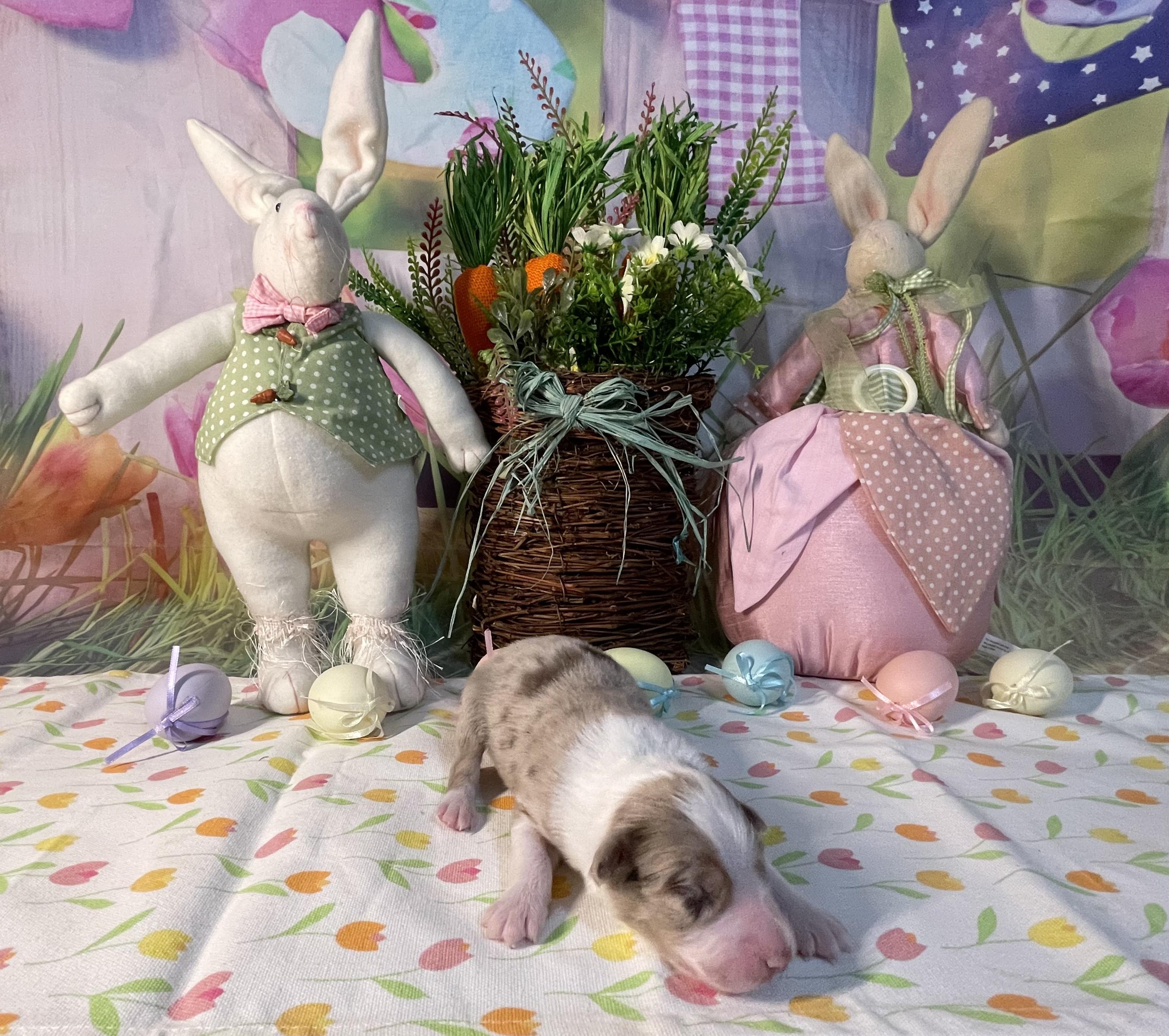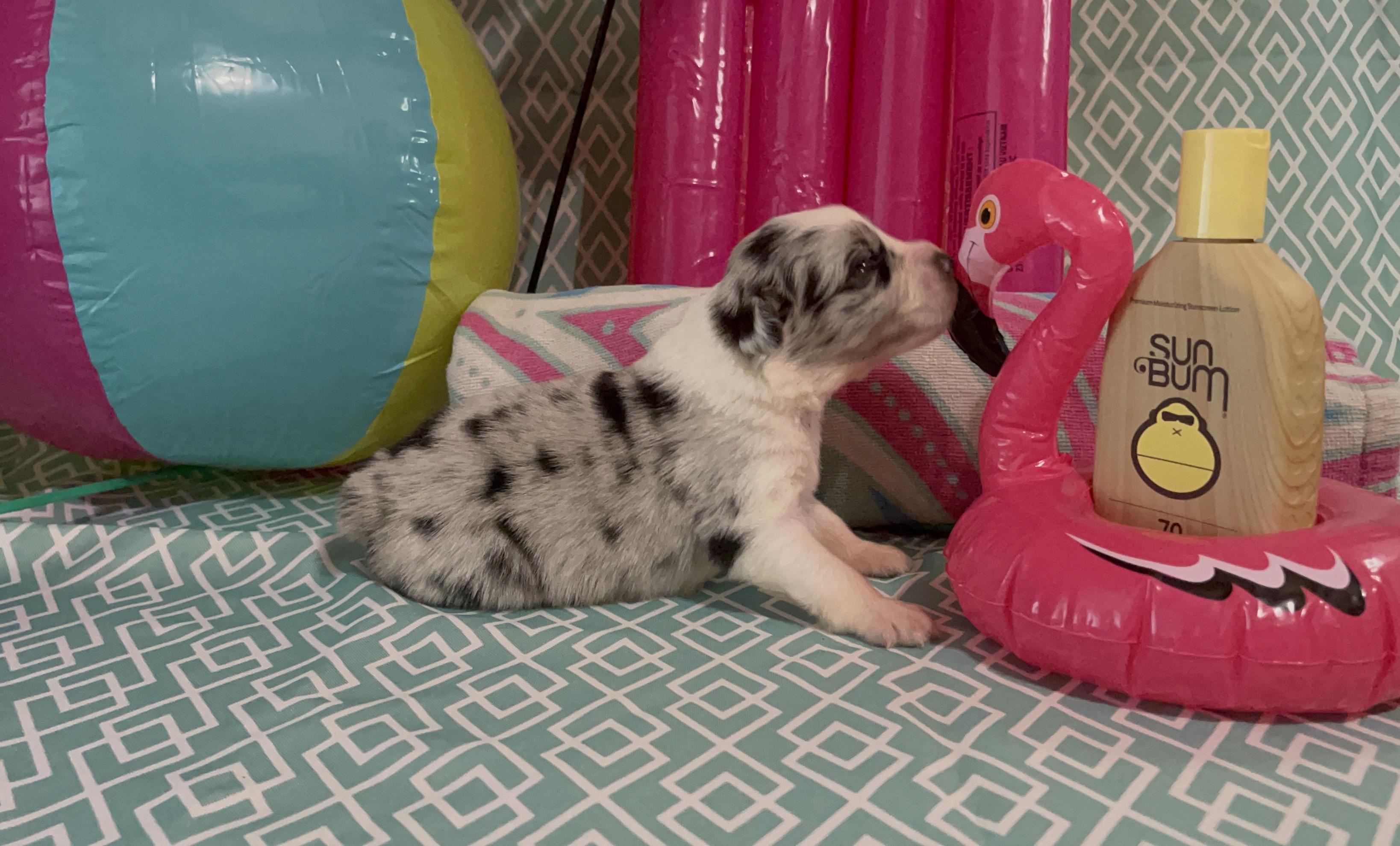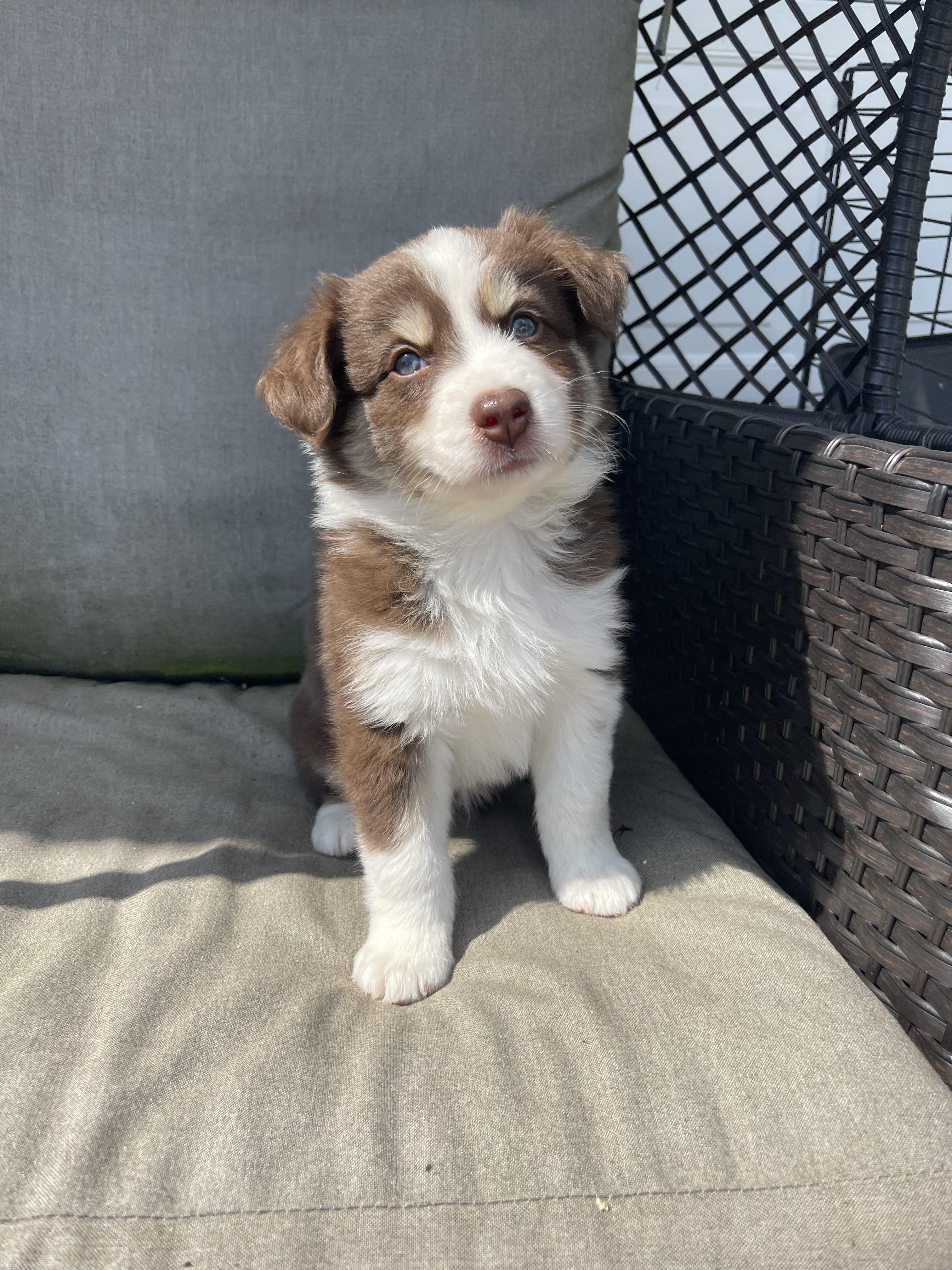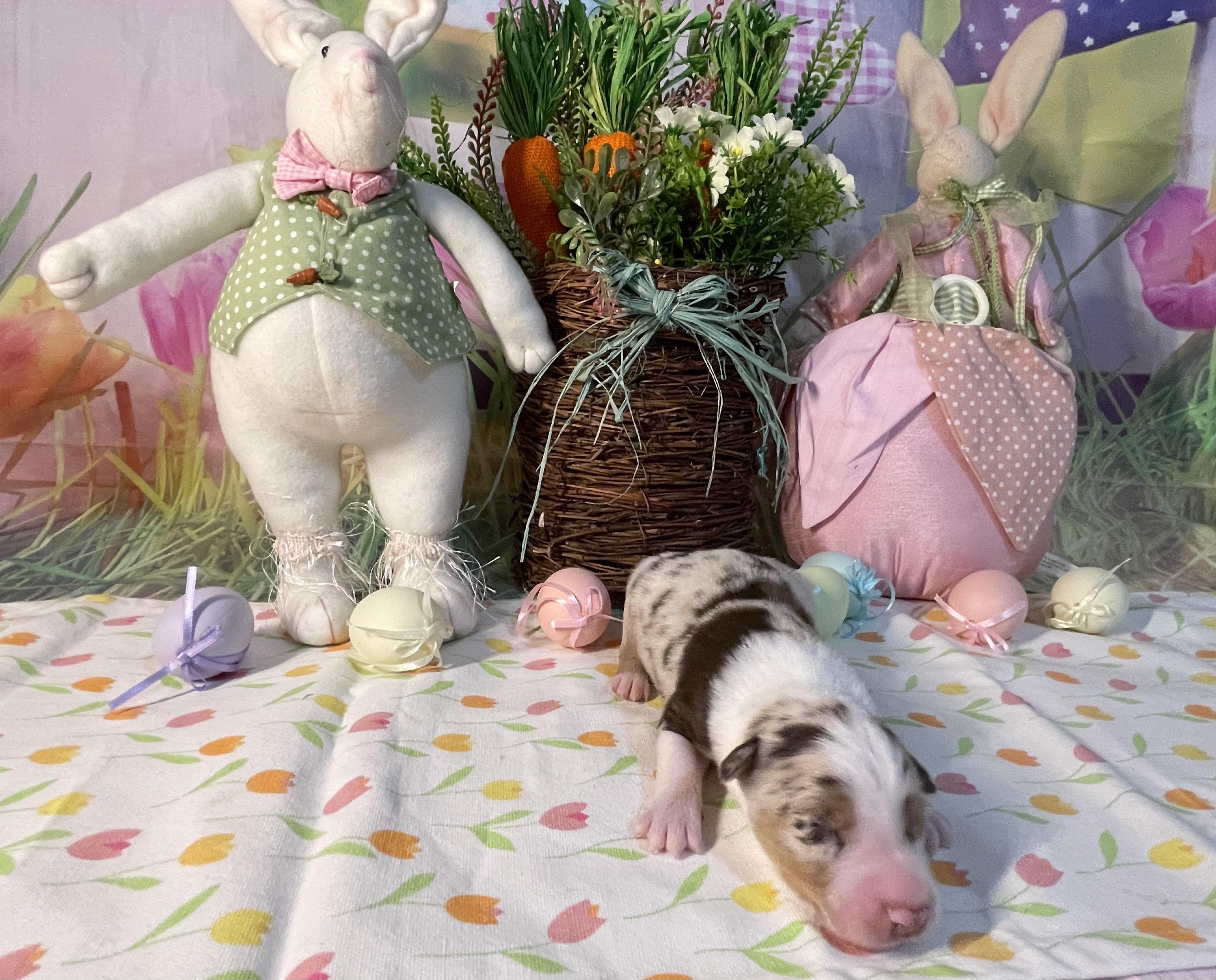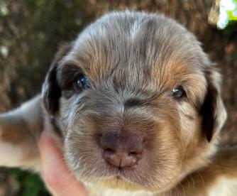 Our puppies include red merle, blue merle, black tri-color, and red tri-color. Colors will vary depending on the parent dogs.
