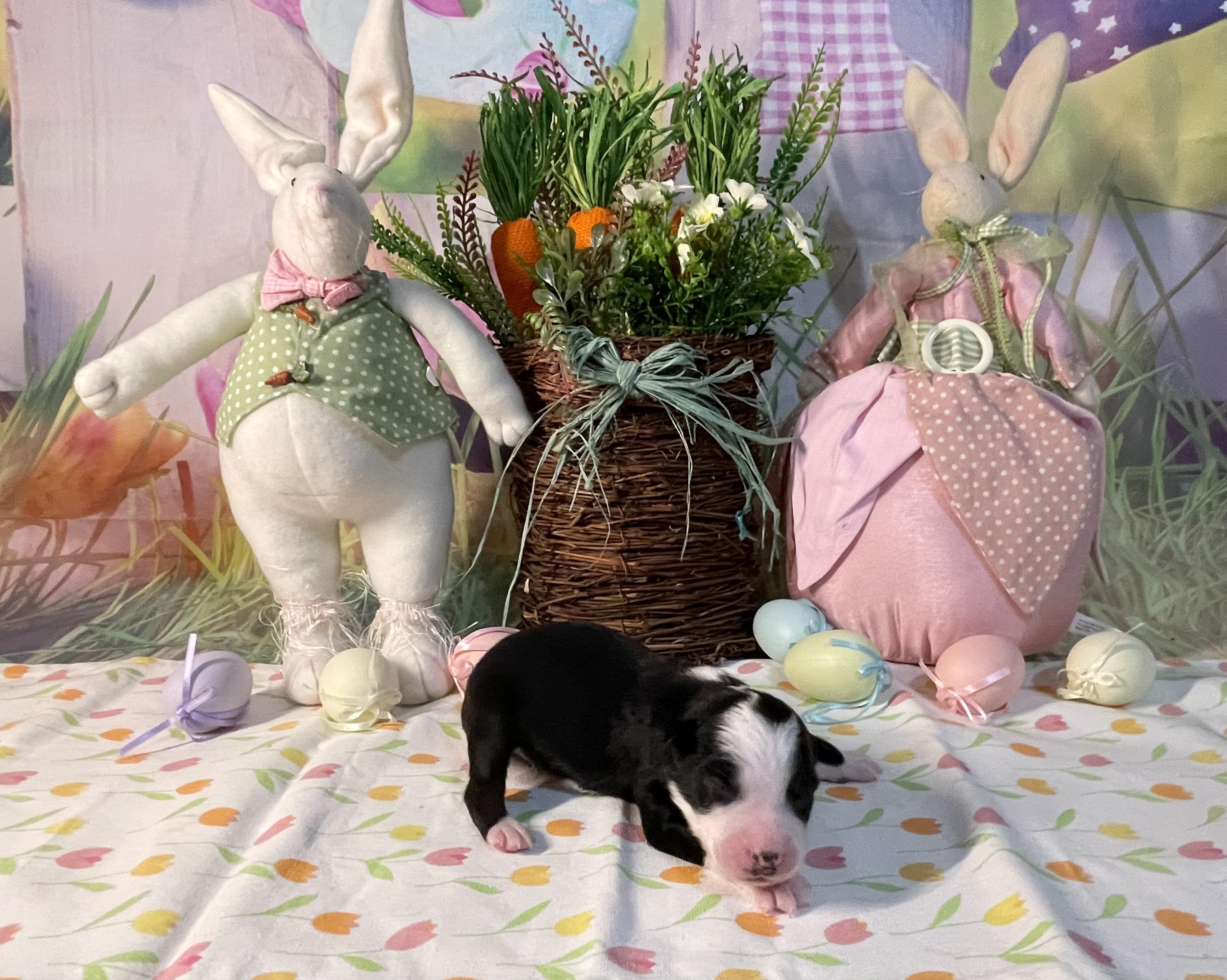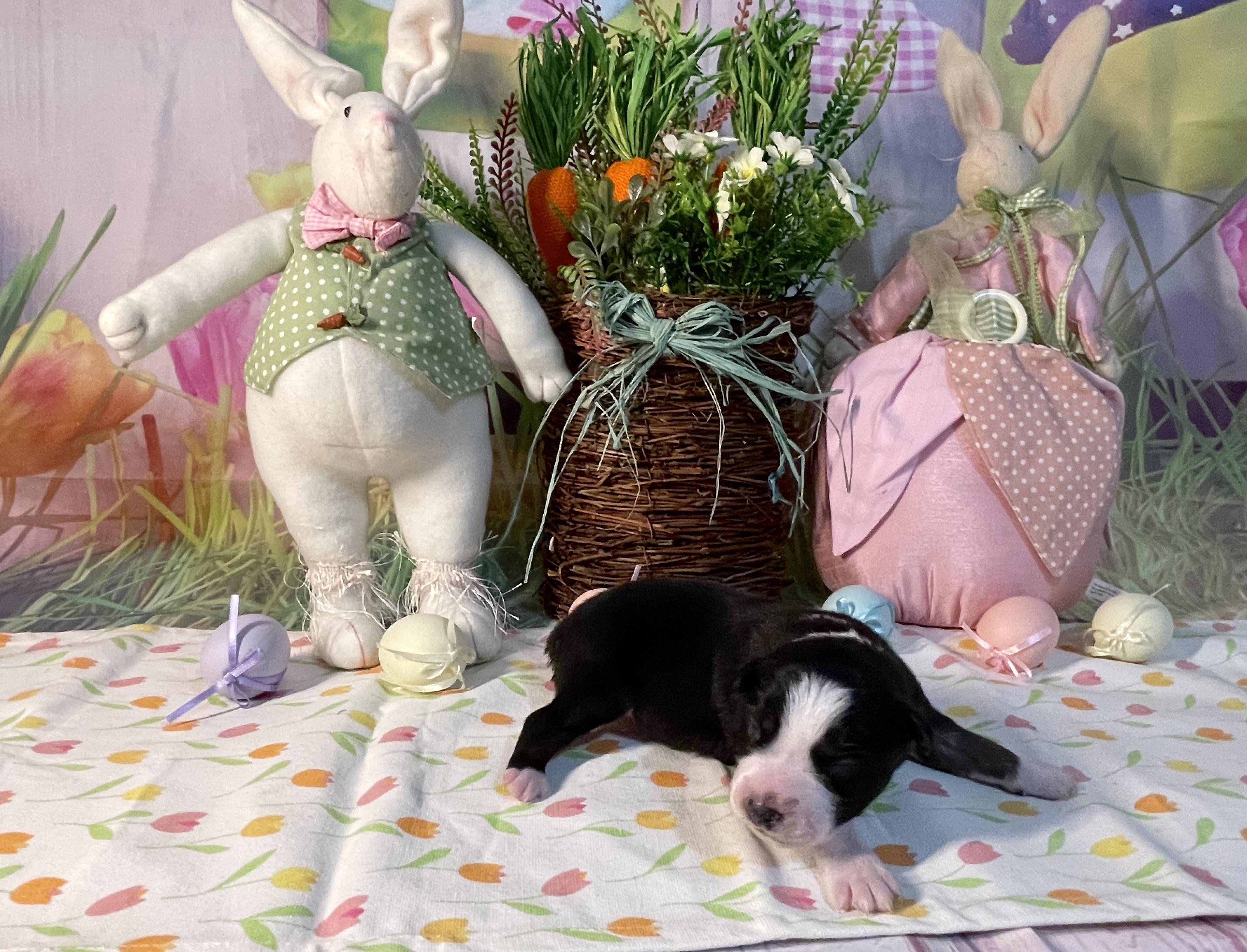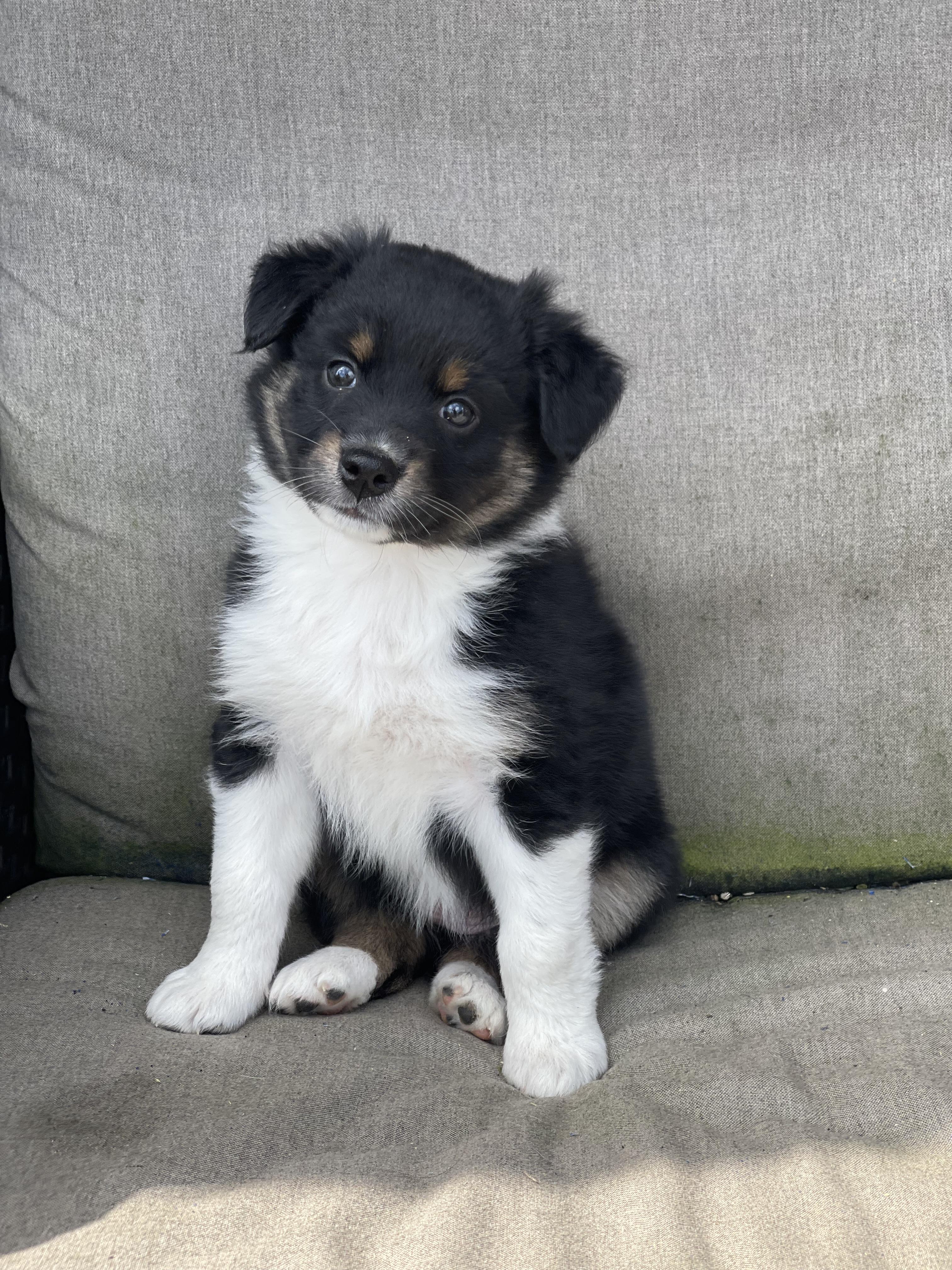 8 weeks Health certificate day for the puppies! Everyone did great at the vet visit and getting ready to go to their forever homes. The two black tris are still looking for their forever families.